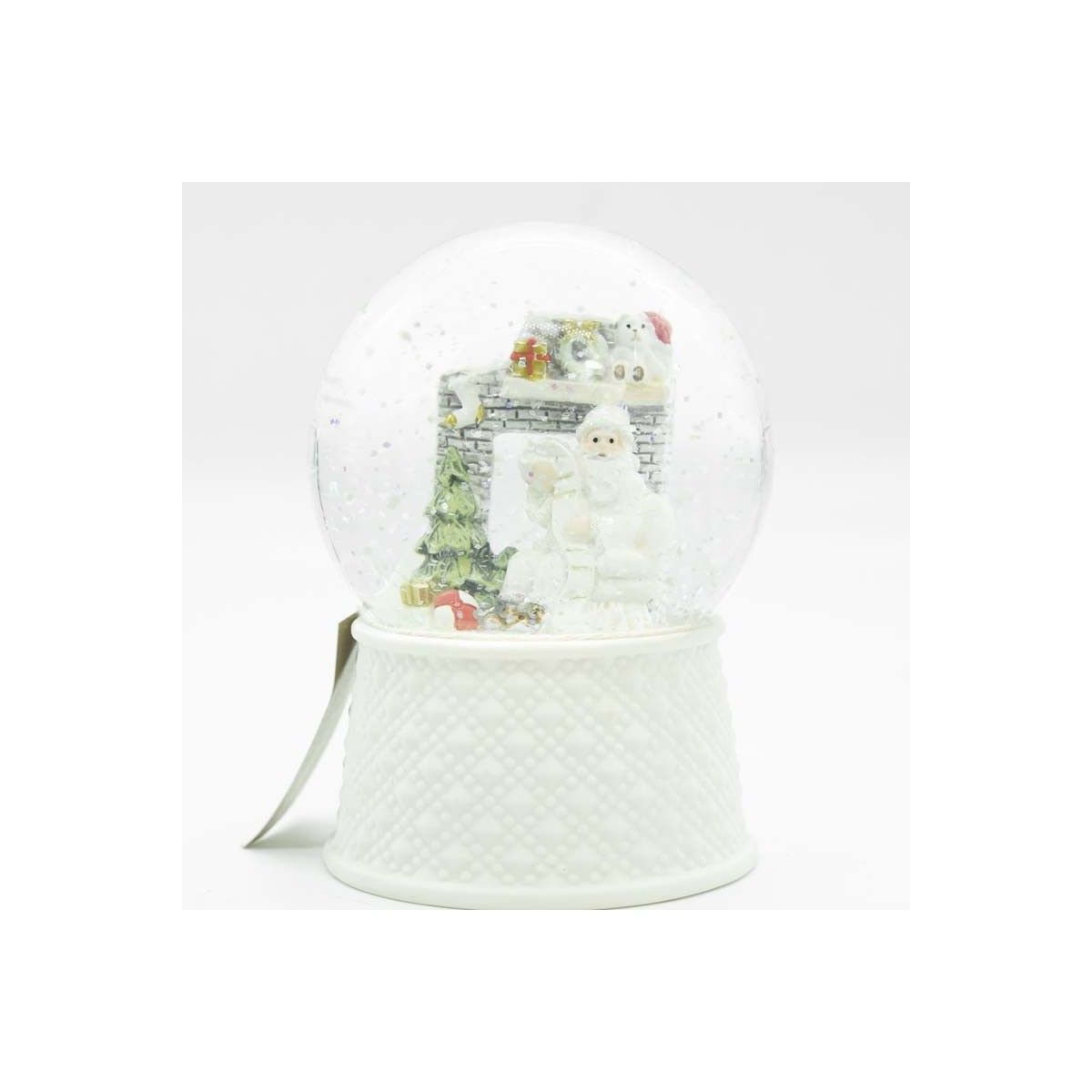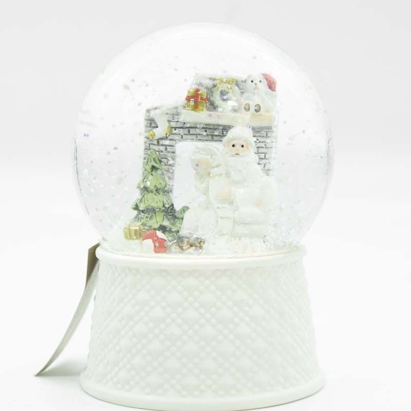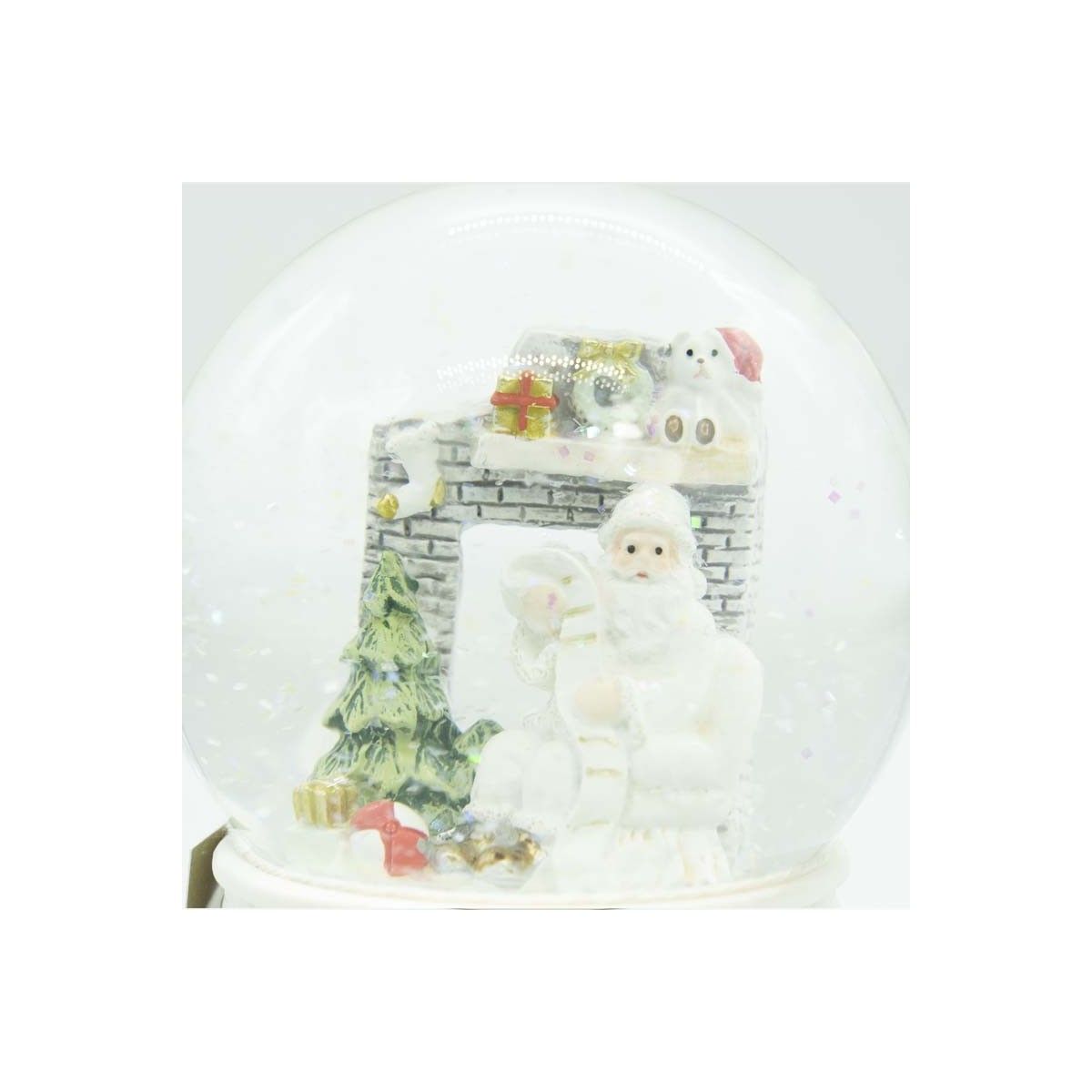 Sfera Natalizia ad Acqua in Vetro e Poliresina con Babbo Natale e Albero D.10 cm