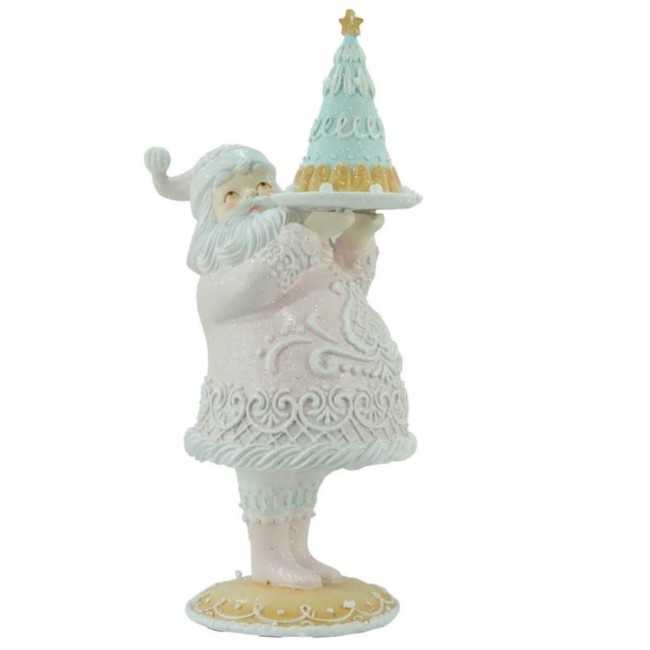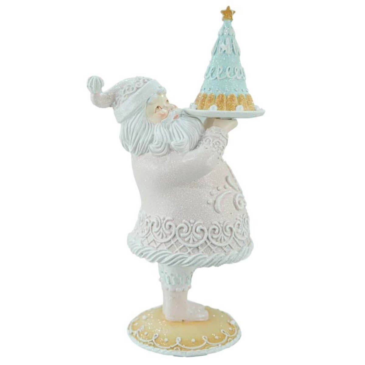 Babbo Natale di Marzapane con Torta Decorativa in Resina – Elegante Decorazione Natalizia H. 42,8 cm