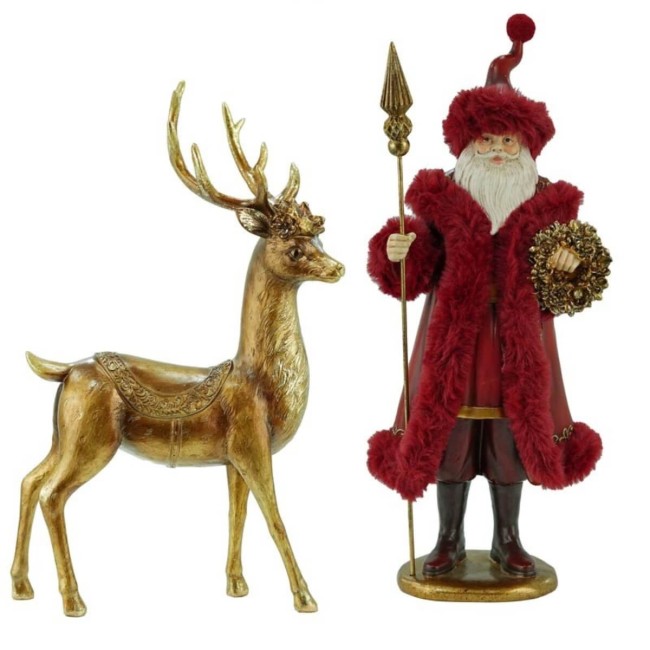- Set natalizio con Babbo Natale con scettro e renna oro decorativa