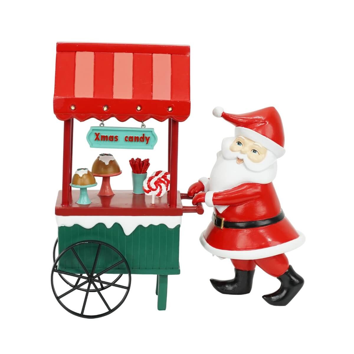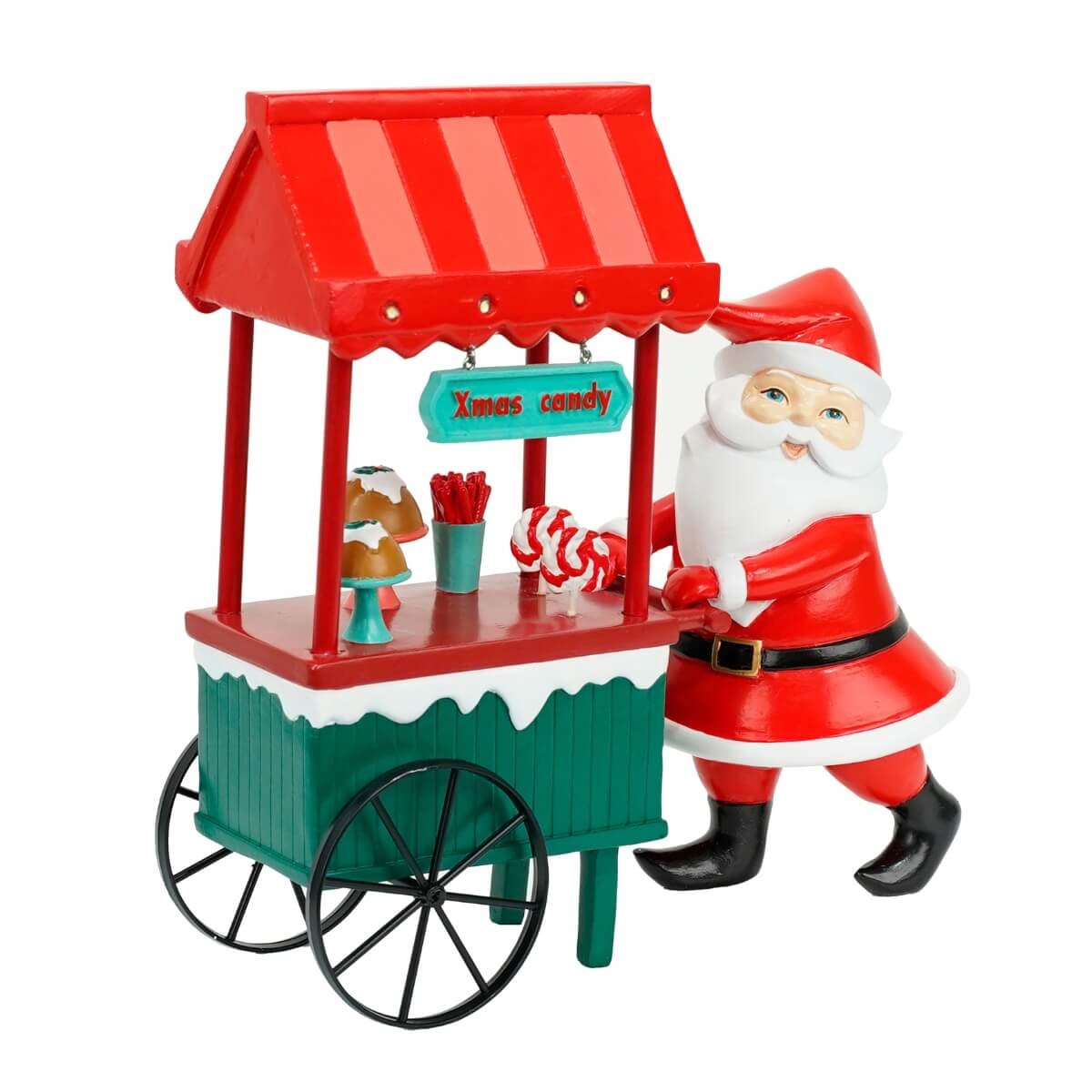 Babbo Natale con Carrettino dei Dolci con LED – Decorazione Natalizia in Resina
