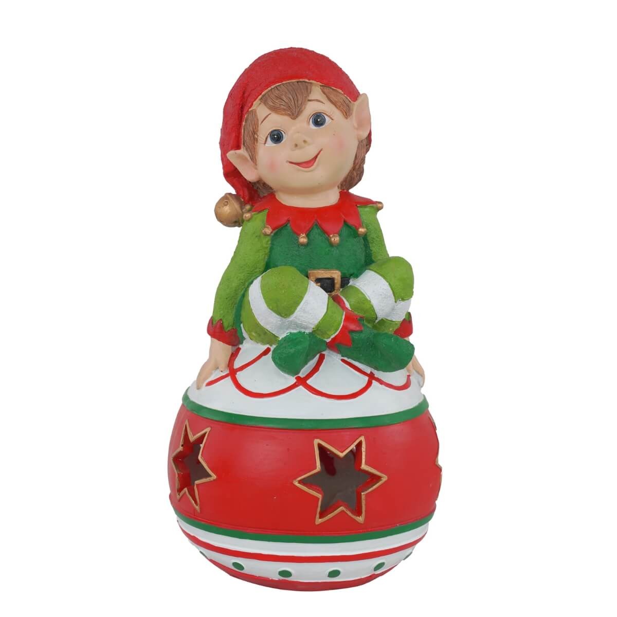 Elfo Natalizio su Sfera in Resina con Luci H.26 cm
