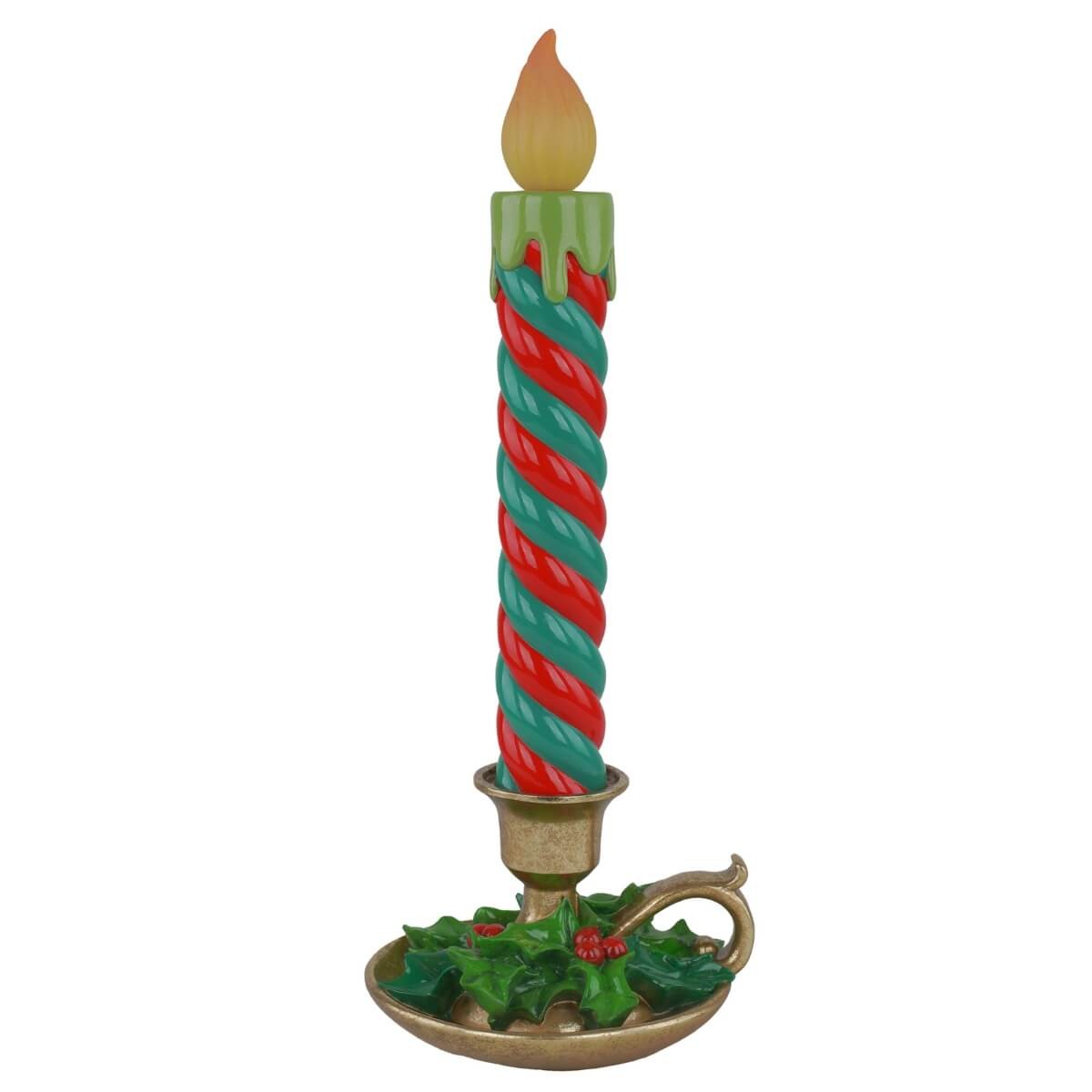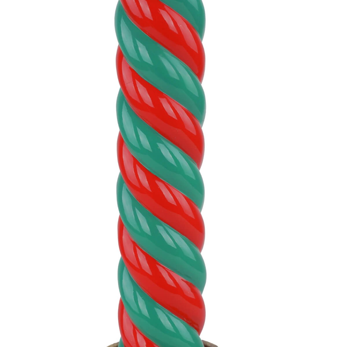 - Design: candela a spirale con base dorata decorata con agrifoglio e bacche rosse