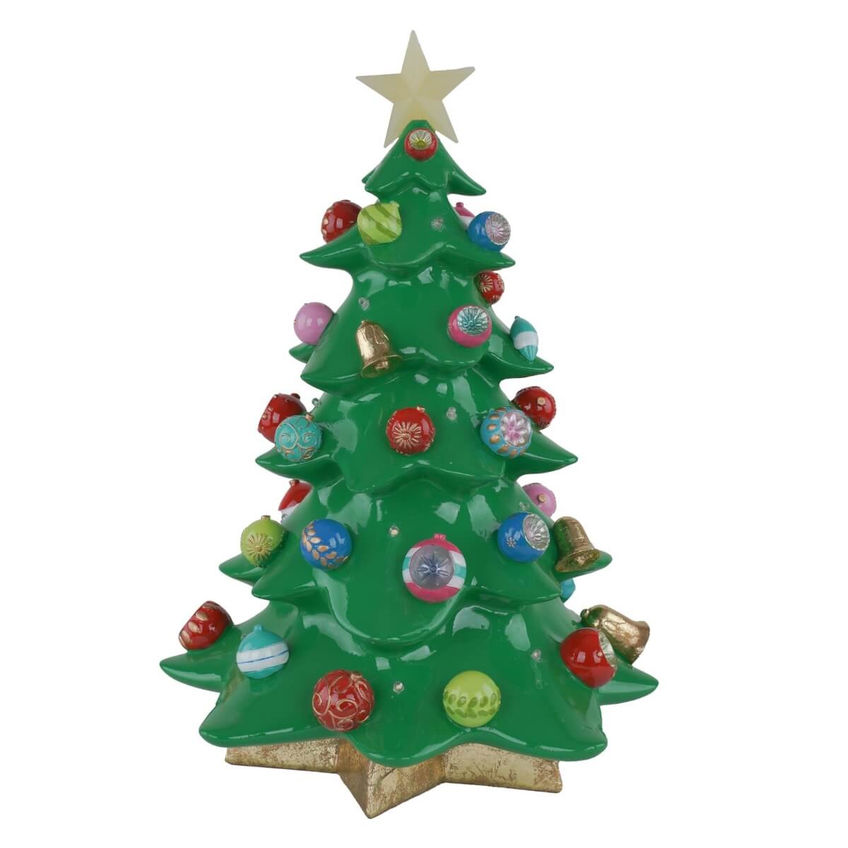Alberello Natalizio Decorato in Resina con Musica e Luci LED – 33,3x31,6xH.46,2 cm