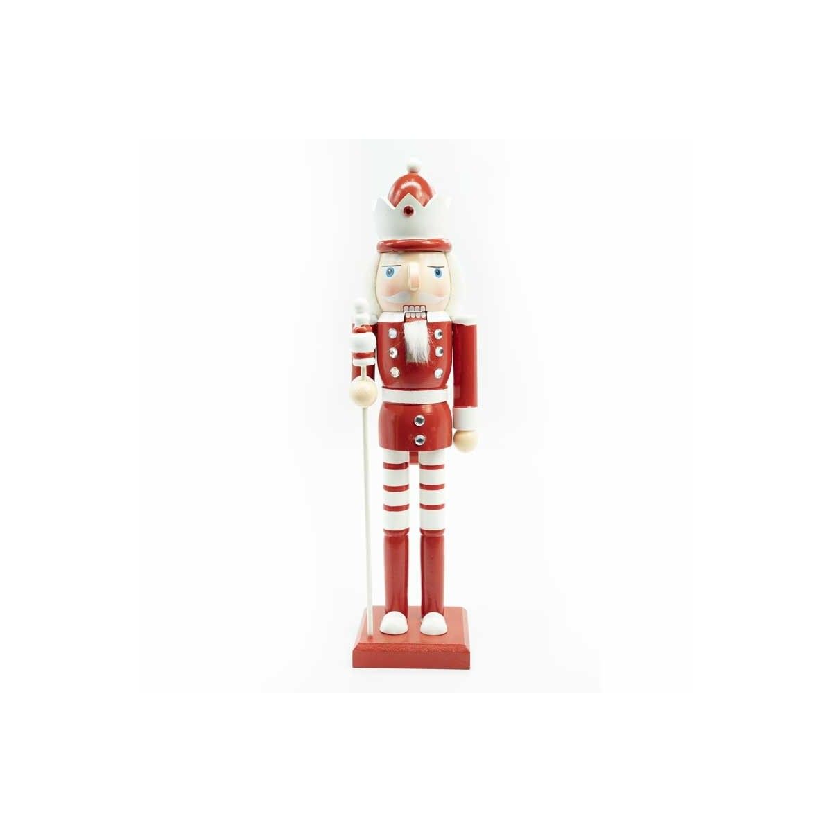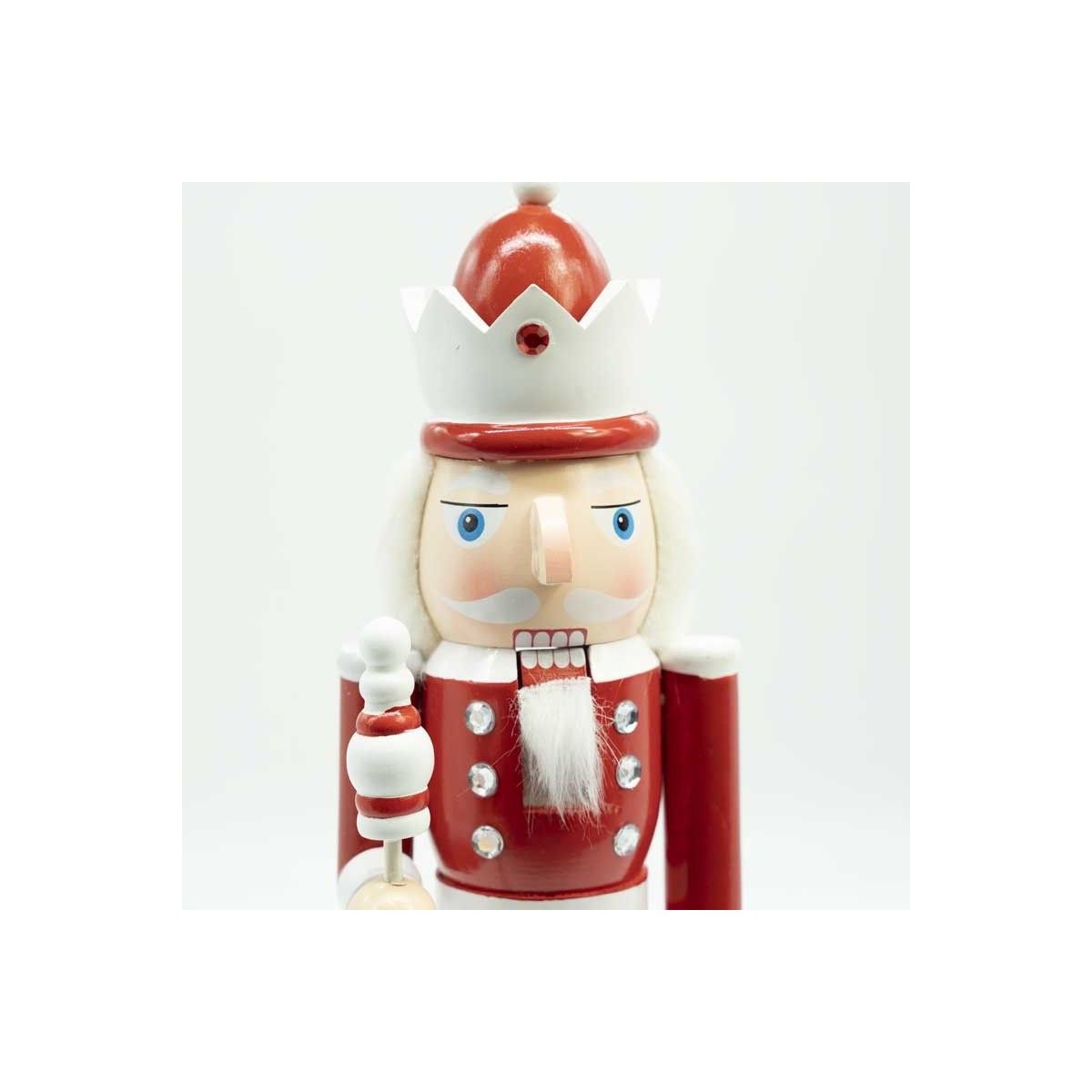 Schiaccianoci Natalizio in Legno Bianco e Rosso con Corona e Scettro H.38 cm