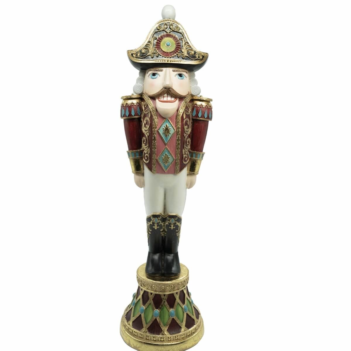 Aggiungi un tocco regale alle tue decorazioni natalizie con lo Schiaccianoci in resina dallo stile elegante e ricercato. Realizzato con estrema cura nei dettagli e rifinito nei classici colori bianco, rosso e nero, questo personaggio iconico delle feste è perfetto per impreziosire vetrine, ingressi o ambienti domestici con un’allure fiabesca. Disponibile in due dimensioni – 36 cm e 70 cm – si adatta a qualsiasi spazio, grande o piccolo. Ideale per allestimenti scenografici o come pezzo centrale in un allestimento a tema classico.