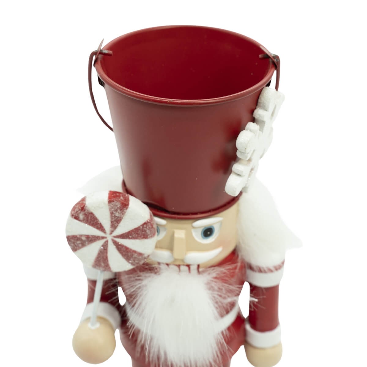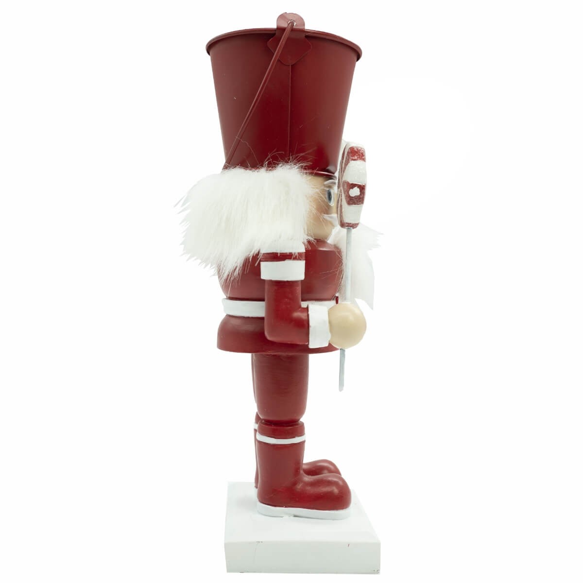 Schiaccianoci Natalizi in Resina con Cappello a Secchio in Latta H.24 cm