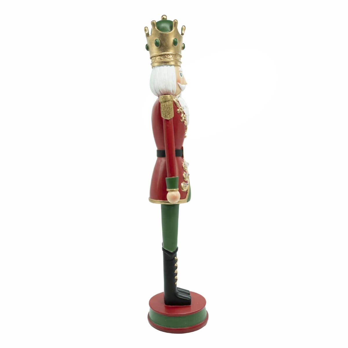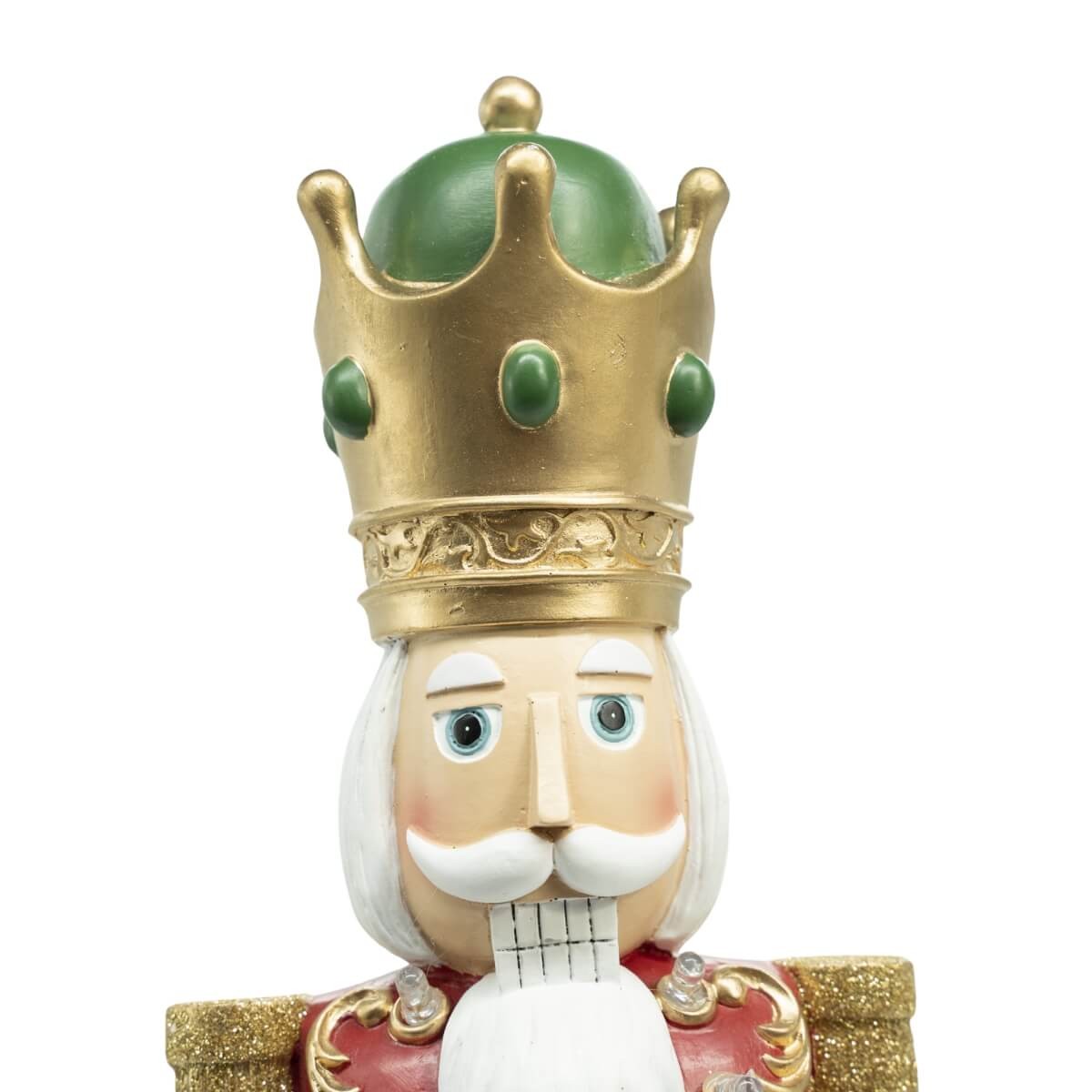 Dona regalità e atmosfera al tuo Natale con questo maestoso schiaccianoci in resina, illuminato da luci LED integrate che ne valorizzano ogni dettaglio. Alto 55,5 cm, è disponibile in due varianti: giacca verde con dettagli rossi o giacca rossa con dettagli verdi. Entrambe le versioni sono rifinite con decori dorati, spalline in stile militare e una corona elegante che lo rende il vero protagonista dell’allestimento natalizio.