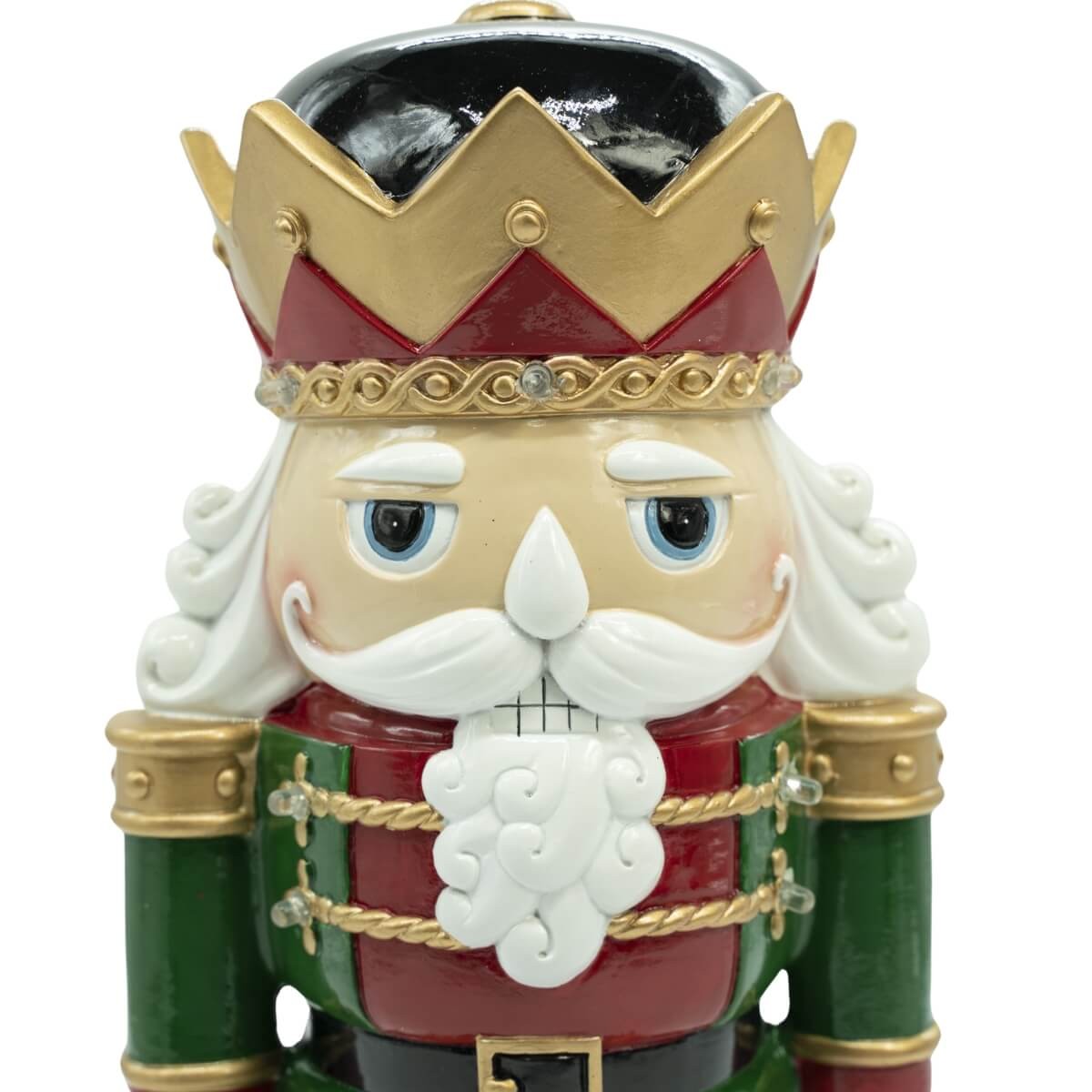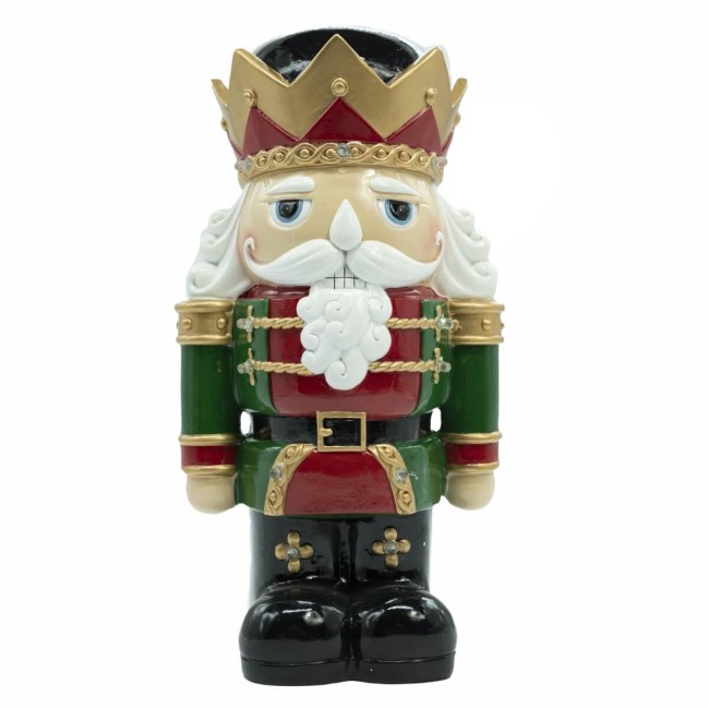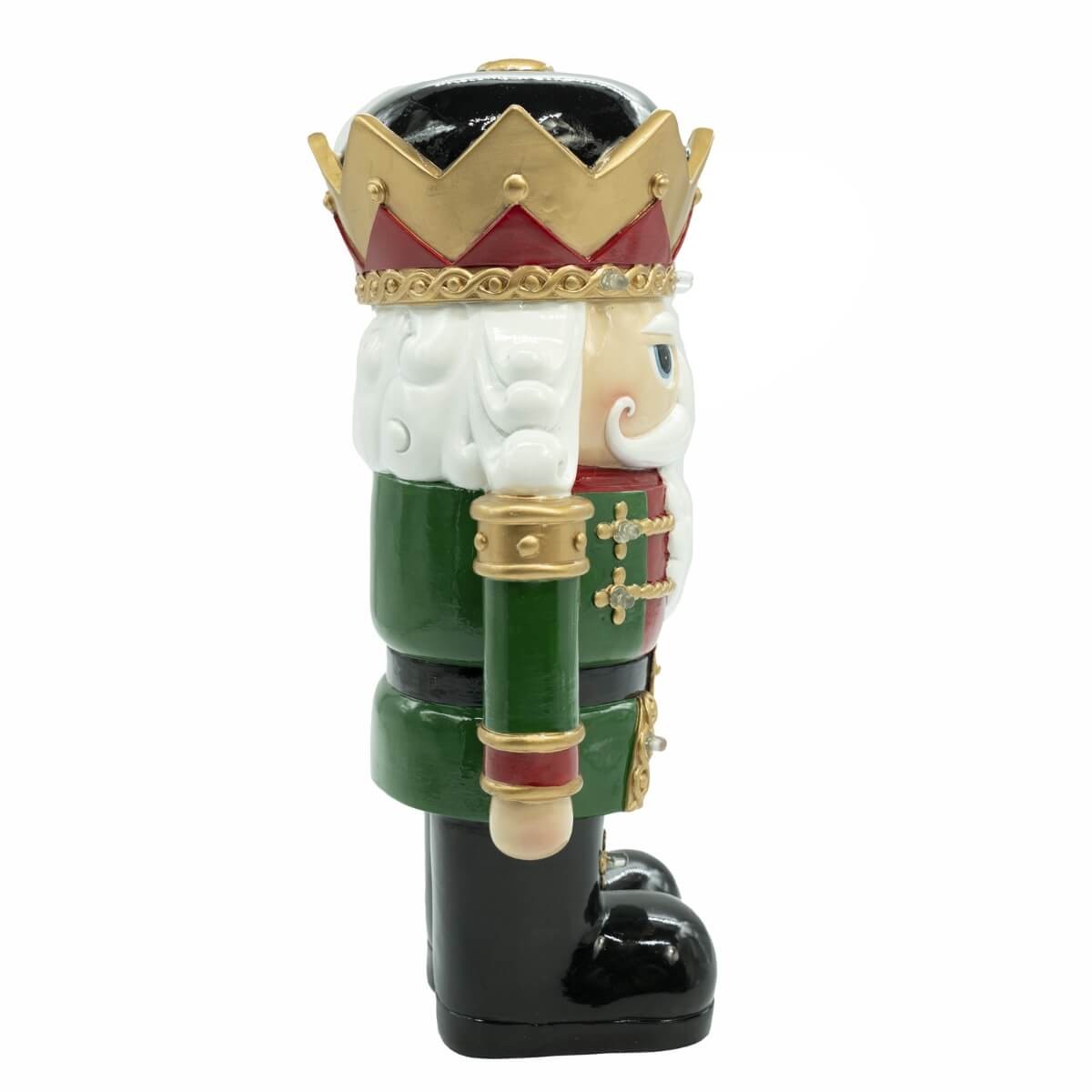 Schiaccianoci Natalizio in Resina con Luci LED H.31 cm – Giacca Verde e Corona Rossa Oro