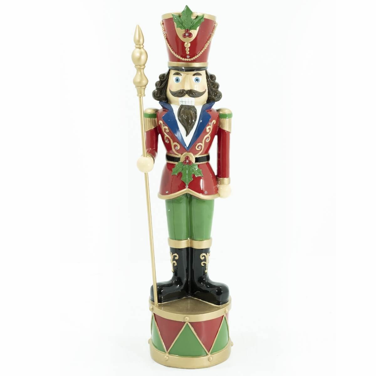 Schiaccianoci Natalizio in Resina con Base a Tamburo e Luci Led H.94 cm
