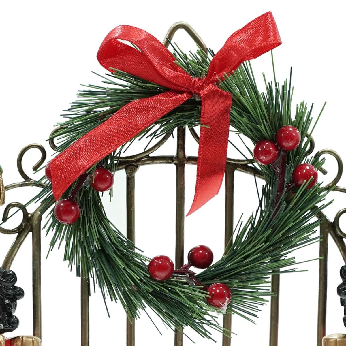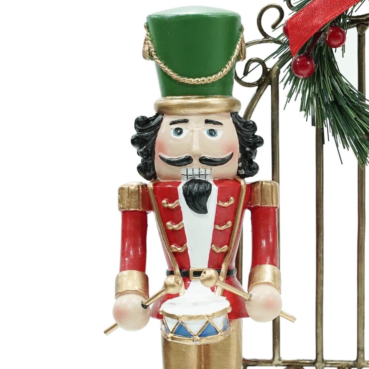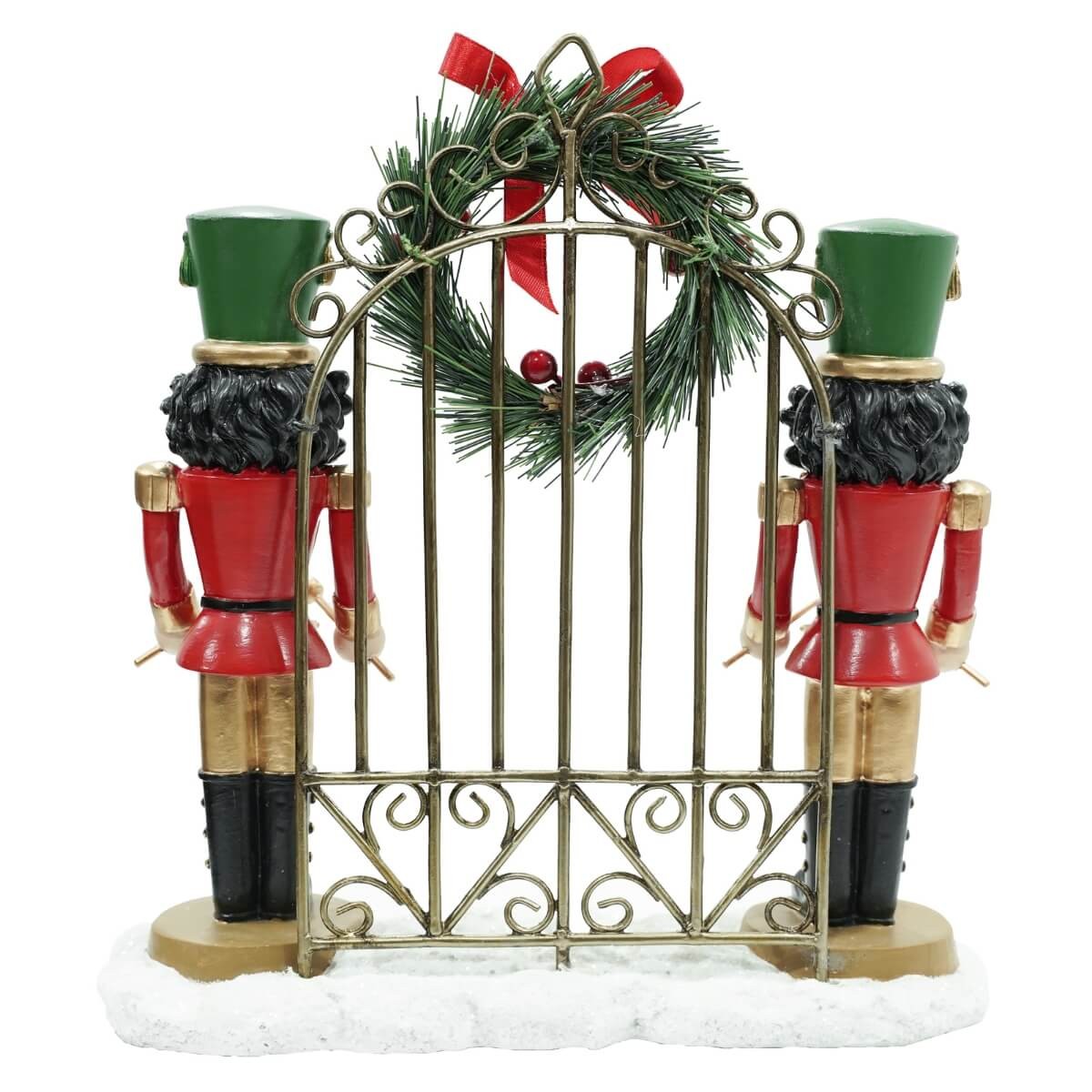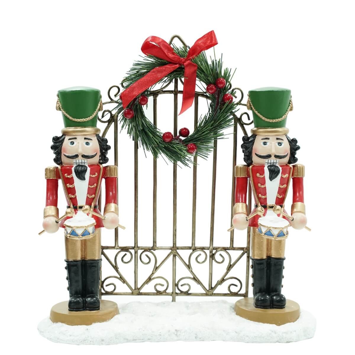 Decorazione Natalizia con Due Schiaccianoci, Cancello e Ghirlanda – Resina e Ferro H.22,5 cm