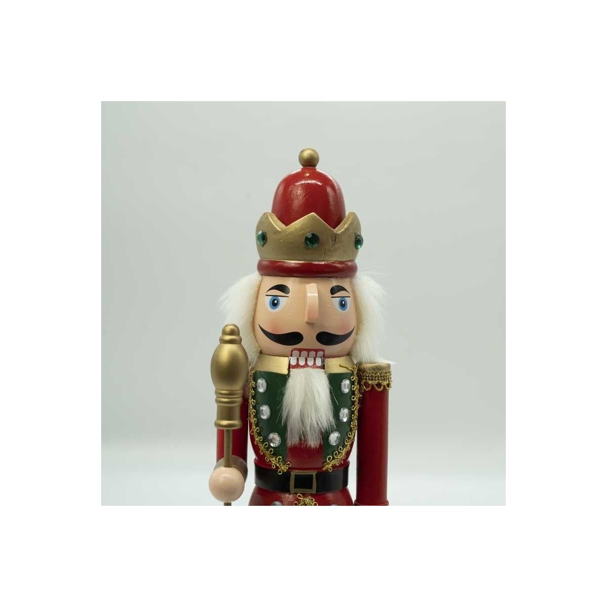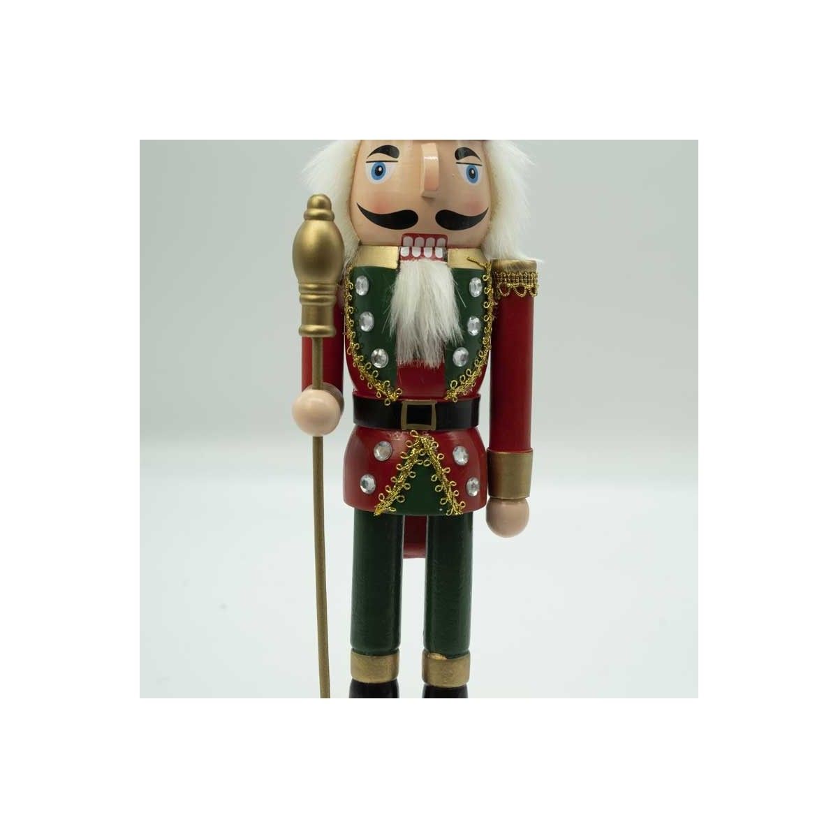 Schiaccianoci Natalizio in Legno su Piedistallo con Scettro H.38 e 60 cm