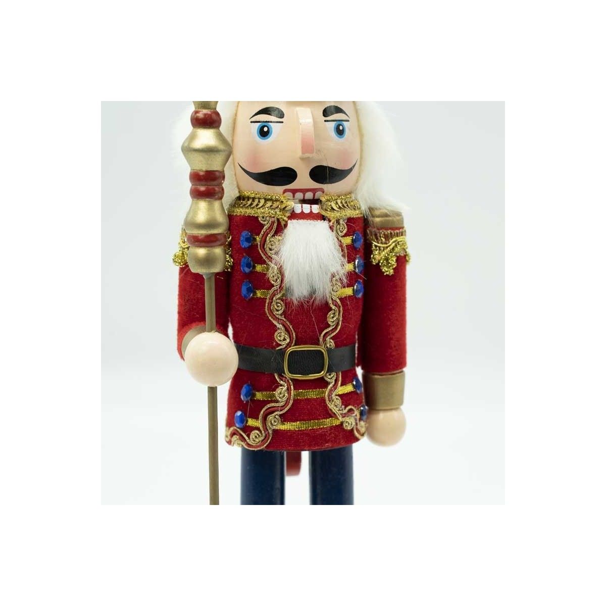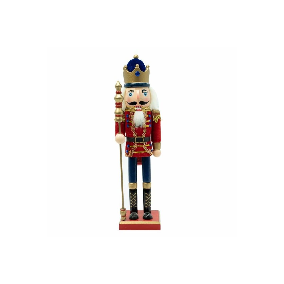 Schiaccianoci Natalizio in Legno su Piedistallo con Scettro H.38 e 60 cm