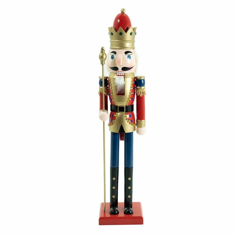 Schiaccianoci di Natale in Legno con Corona e Scettro H.82 cm