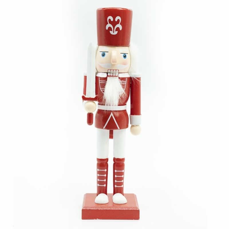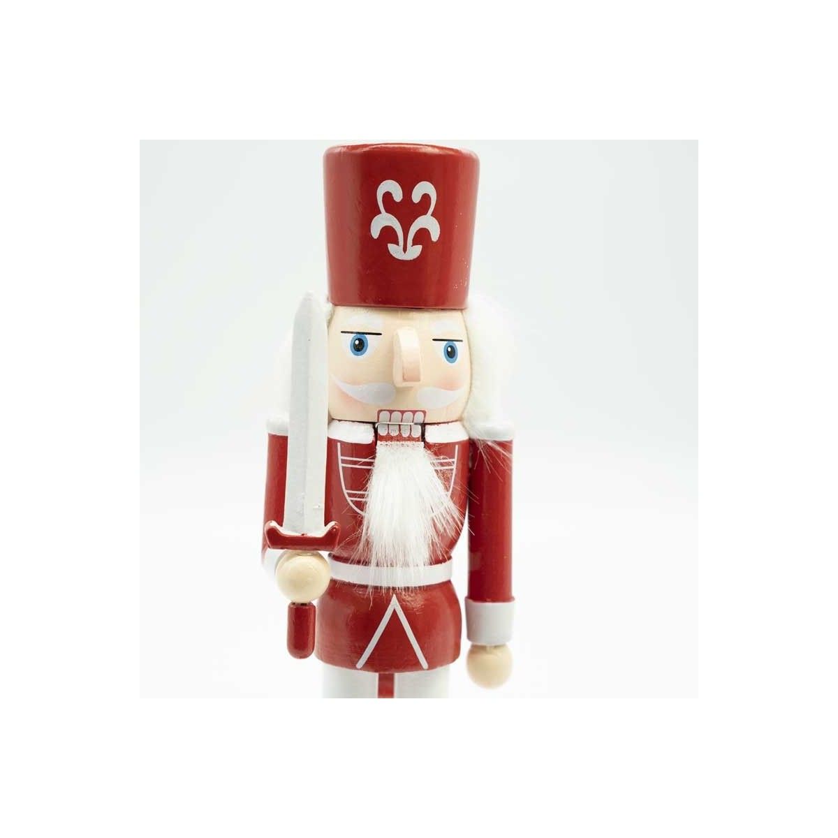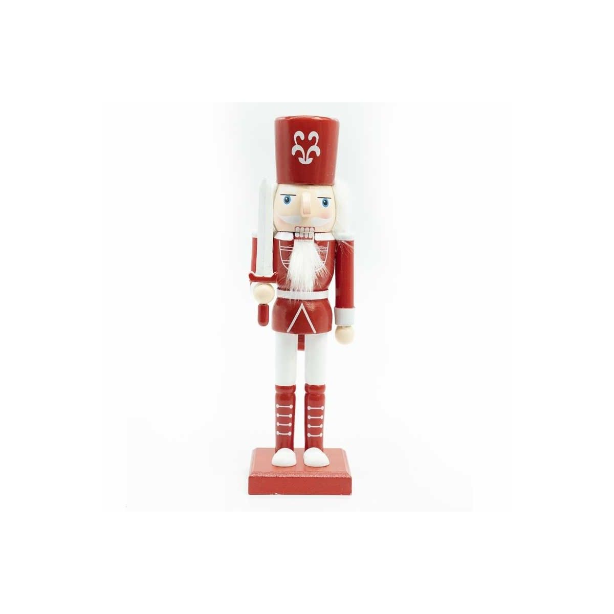Schiaccianoci di Natale in Legno Bianco e Rosso con Spada H.25 cm