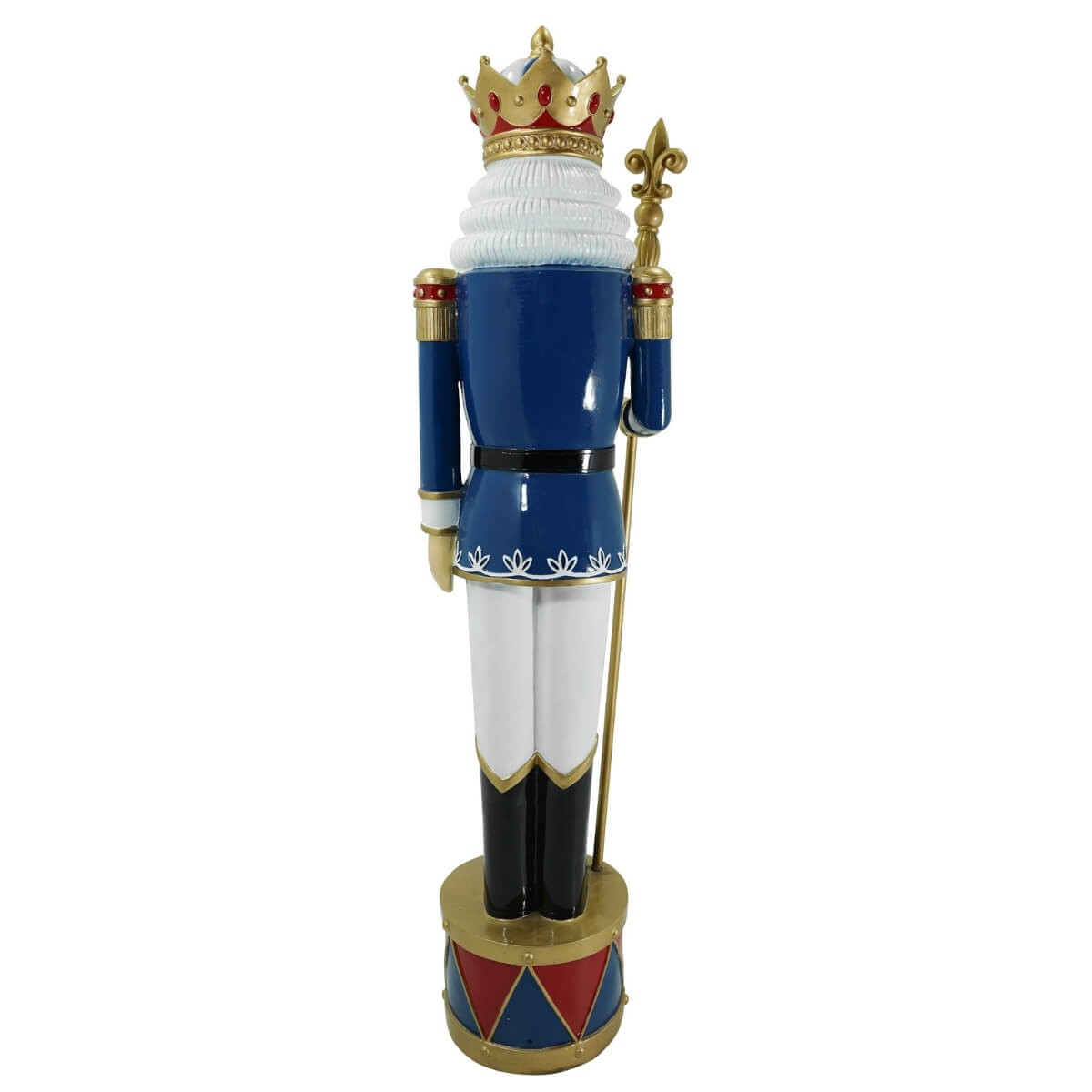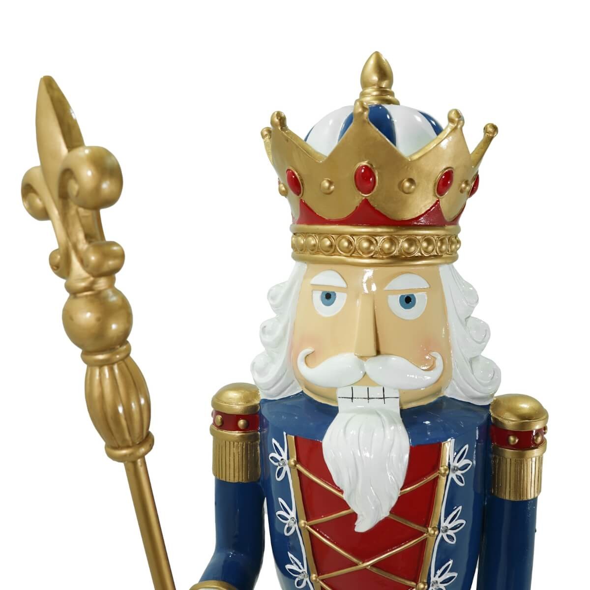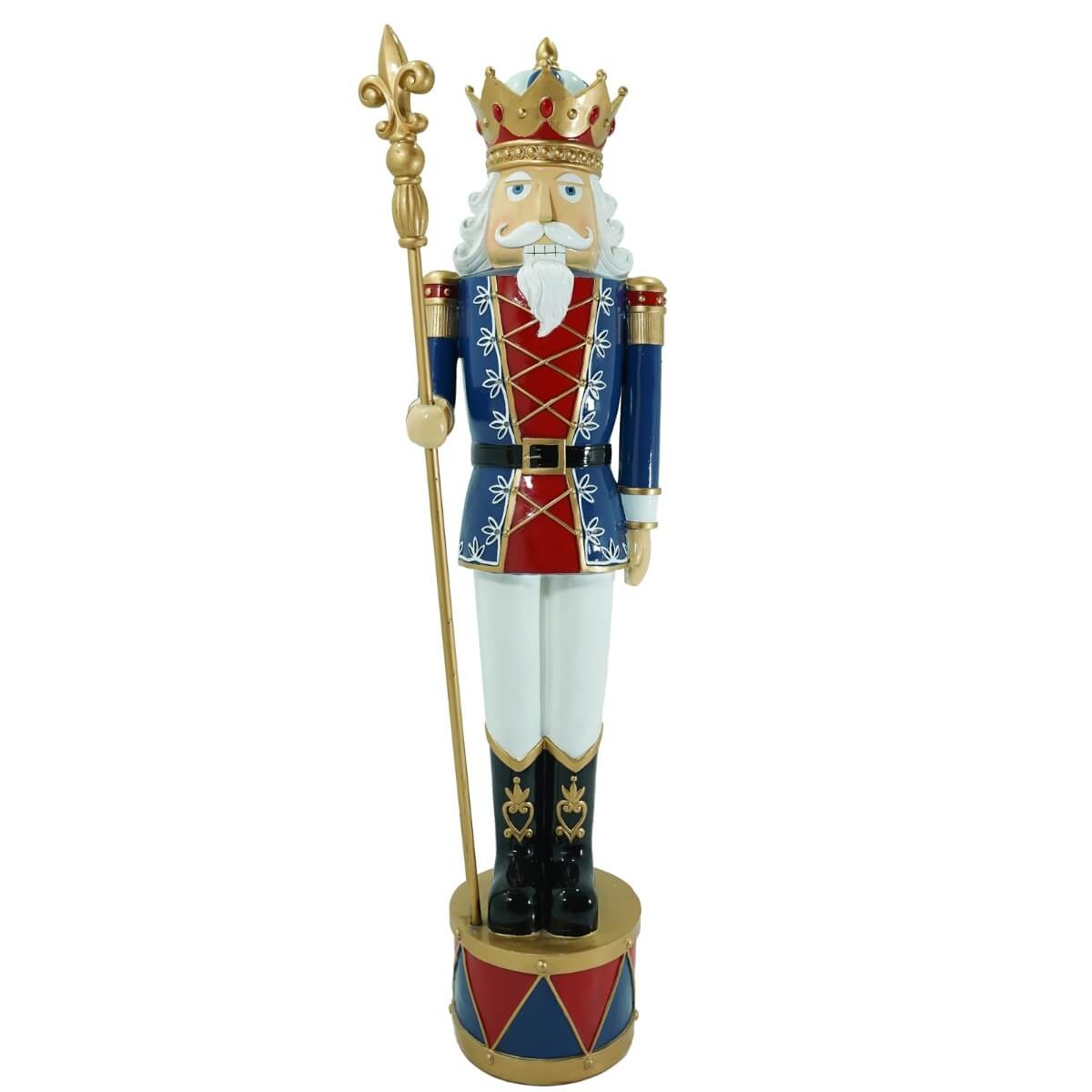Schiaccianoci Reale di Natale in Resina H.145 cm – Corona Dorata e Uniforme Blu, Rossa e Bianca