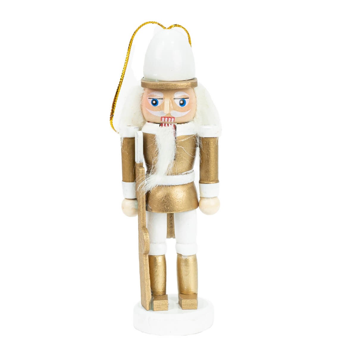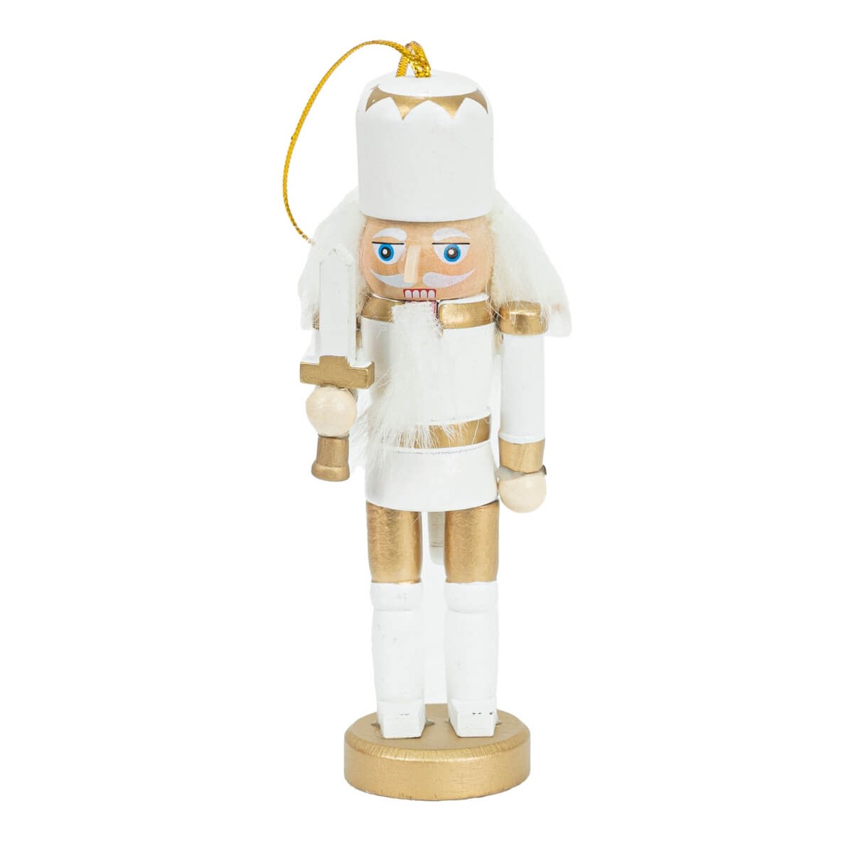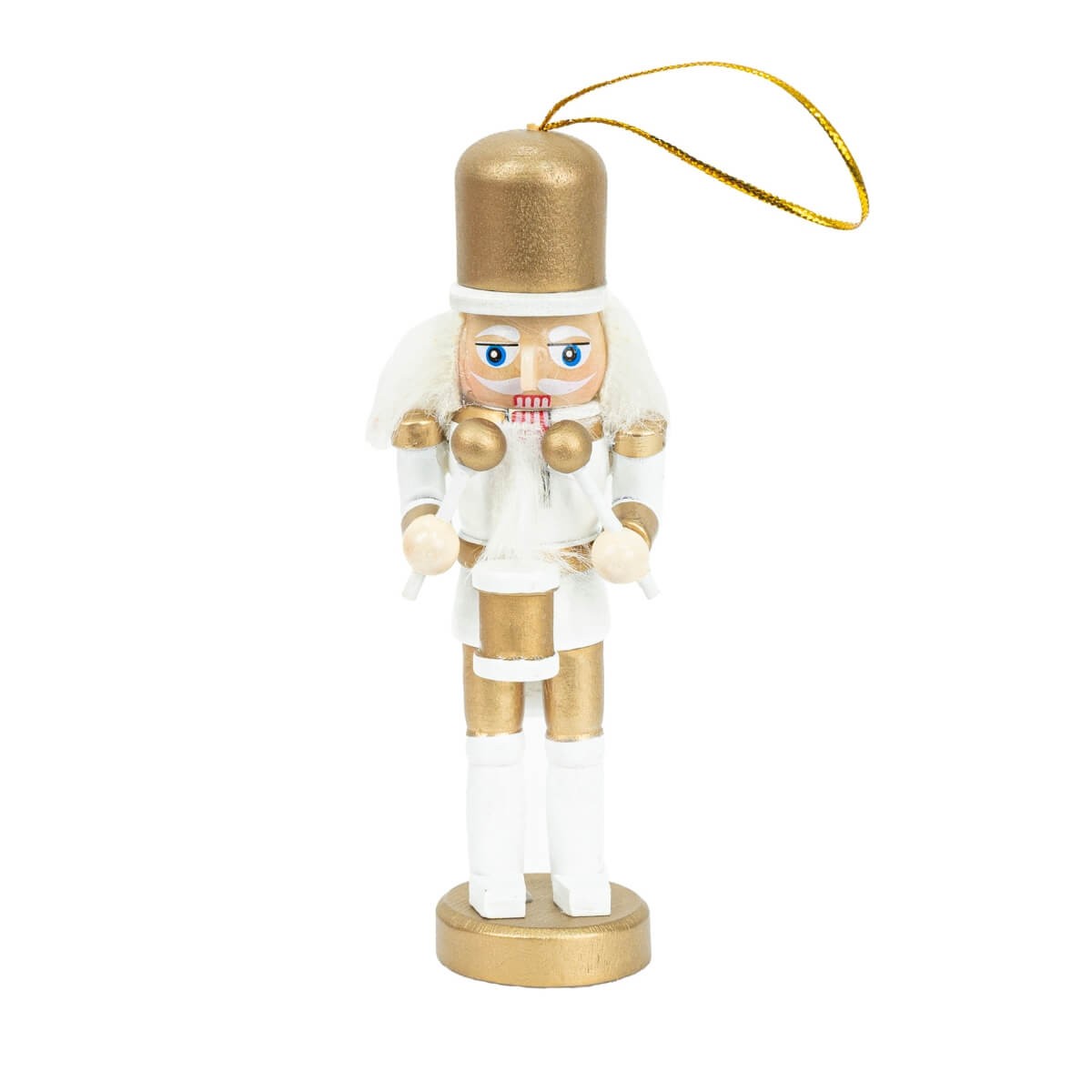 Set 4 Schiaccianoci Natalizi Bianco e Oro – H.12,5 cm | Decorazioni Eleganti da Appendere in Legno