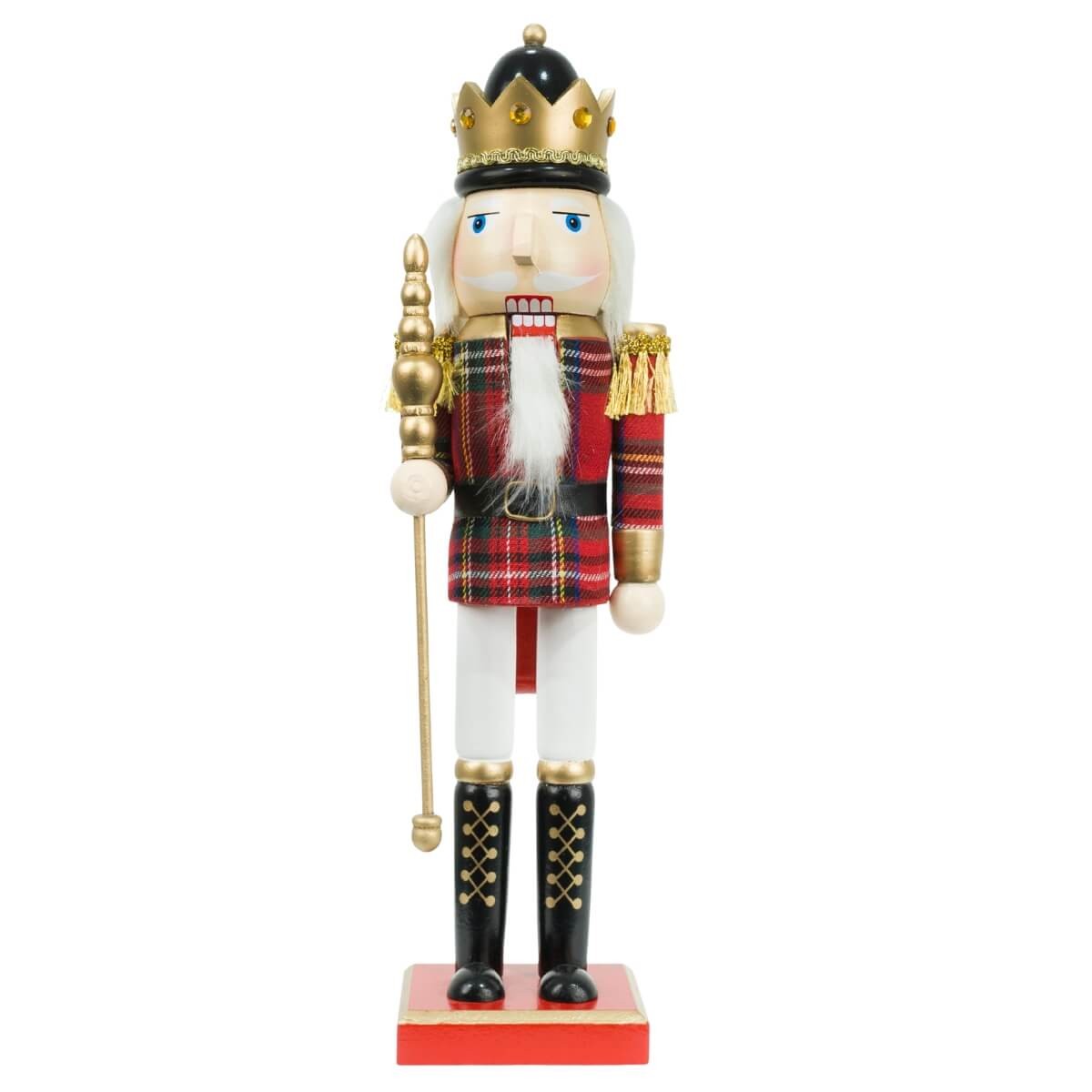 Schiaccianoci Natalizio con Scettro e Giacca a Quadri H.38 cm