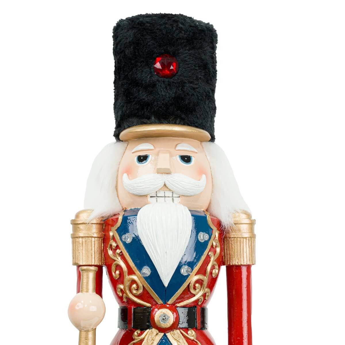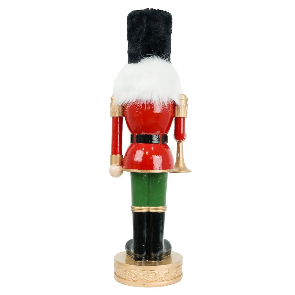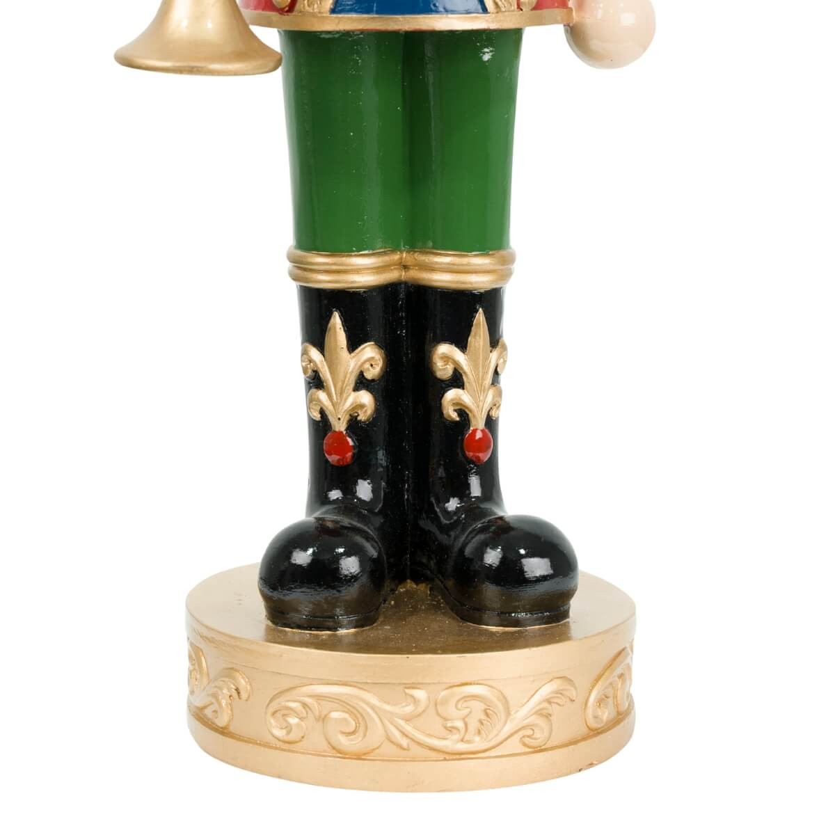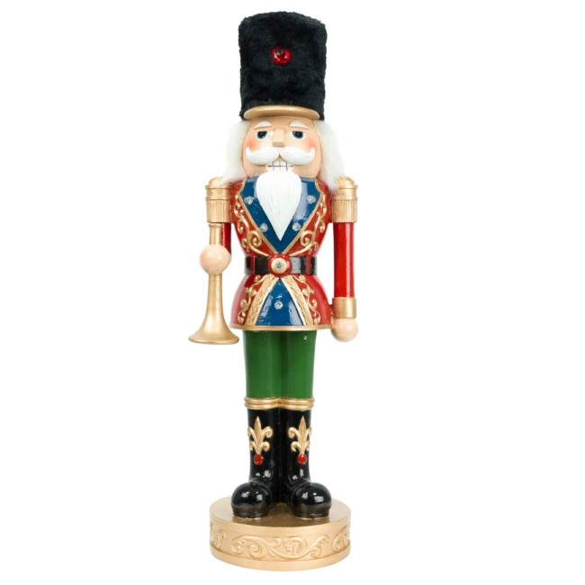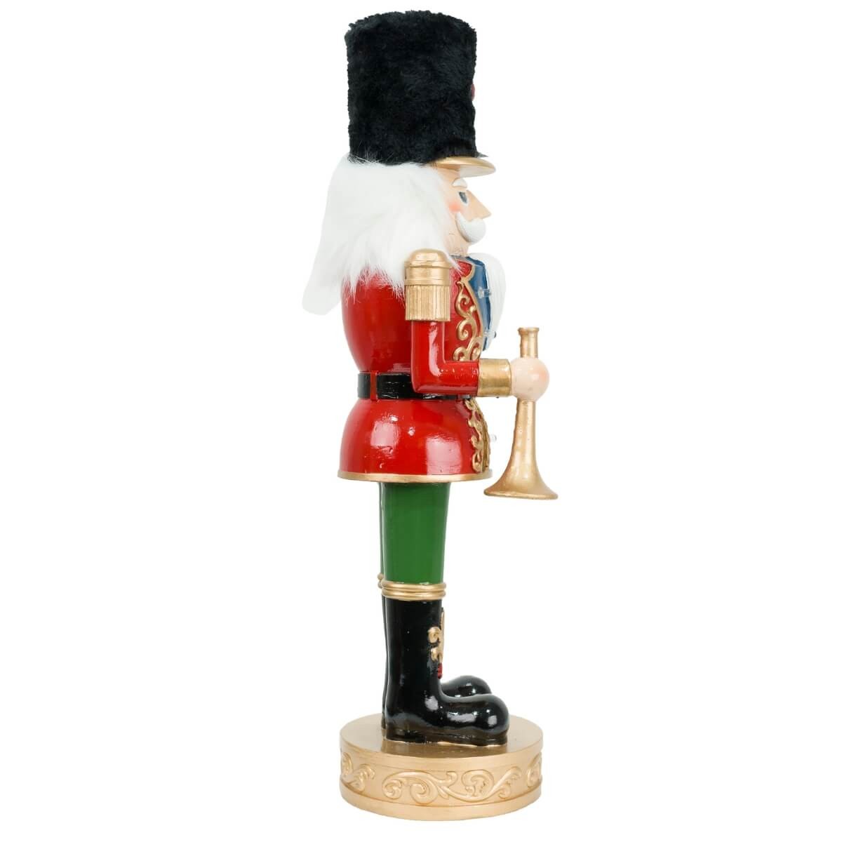Schiaccianoci Natalizio in Resina con Tromba – H.46,5 cm, Giacca Rossa e Blu, Pantaloni Verdi