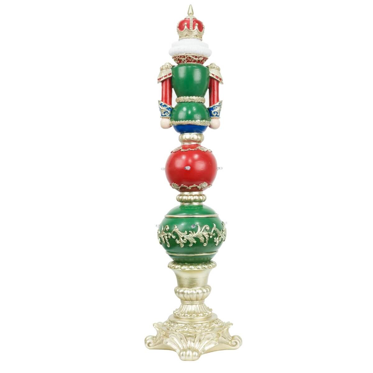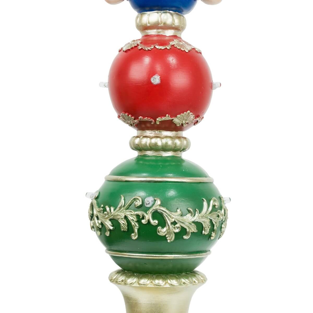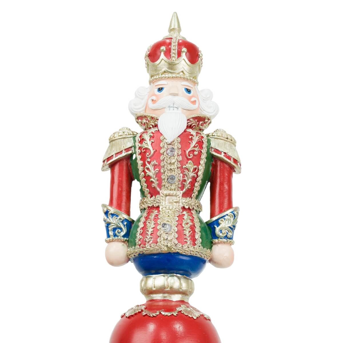 Schiaccianoci Natalizio con Luci LED su Sfere Decorate – H.61 cm – Rosso, Verde, Blu e Oro