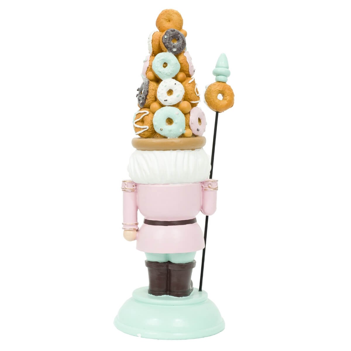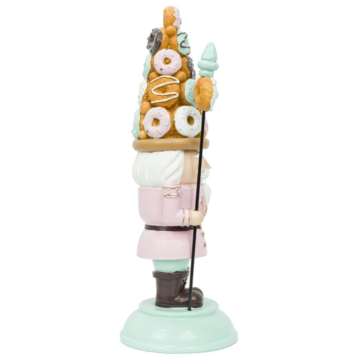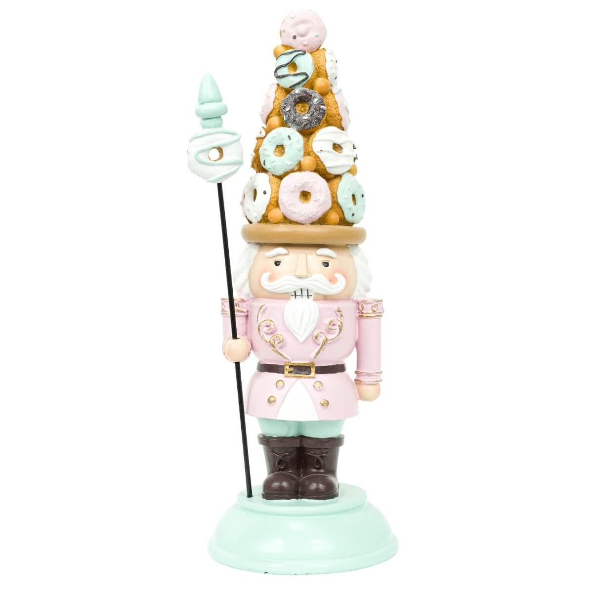 Schiaccianoci Natalizio Rosa e Verde con Cappello di Ciambelle in Resina – H.33,5 cm