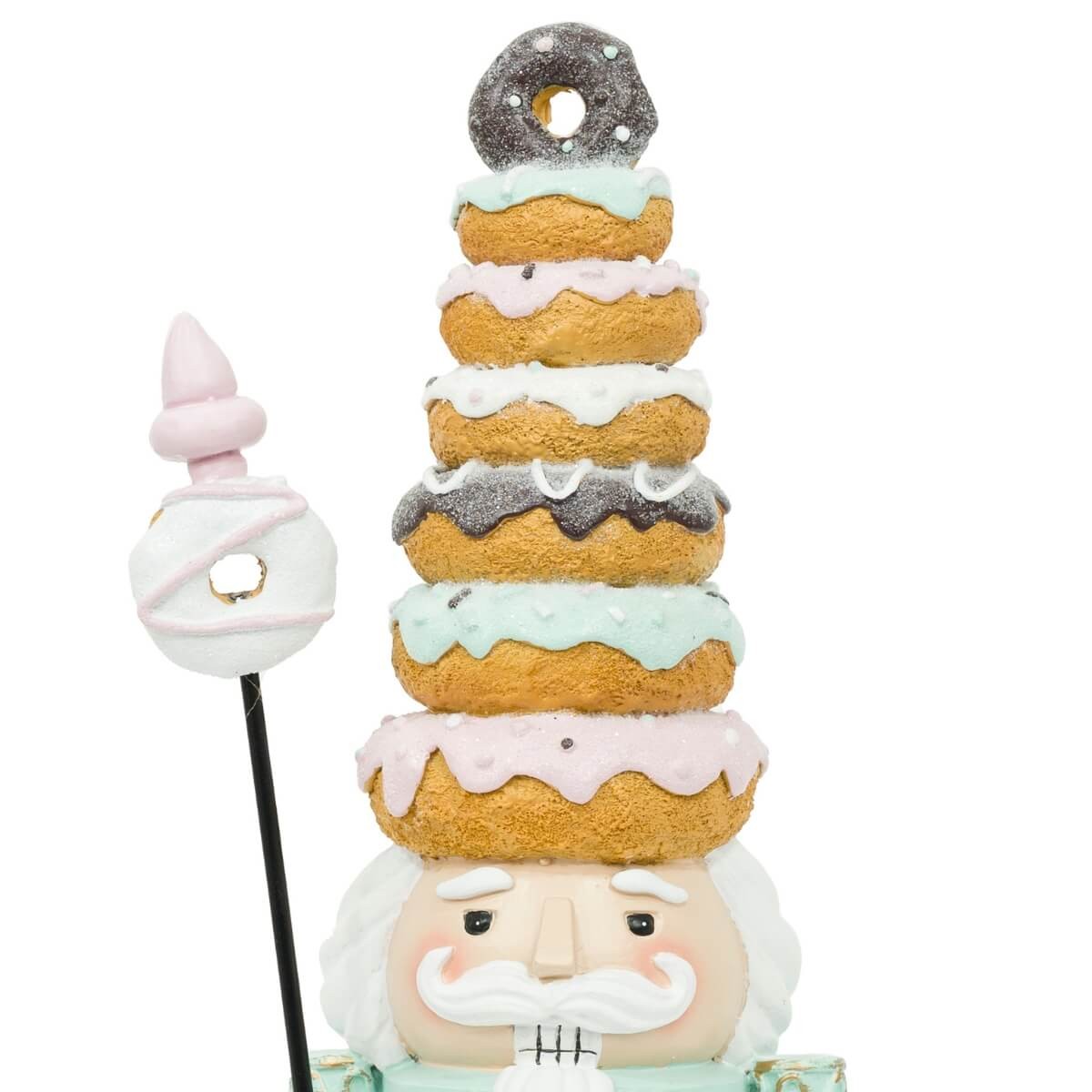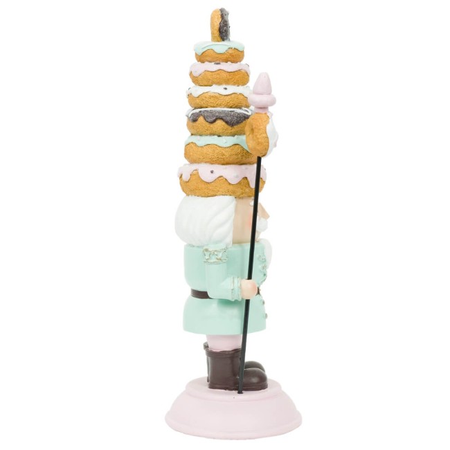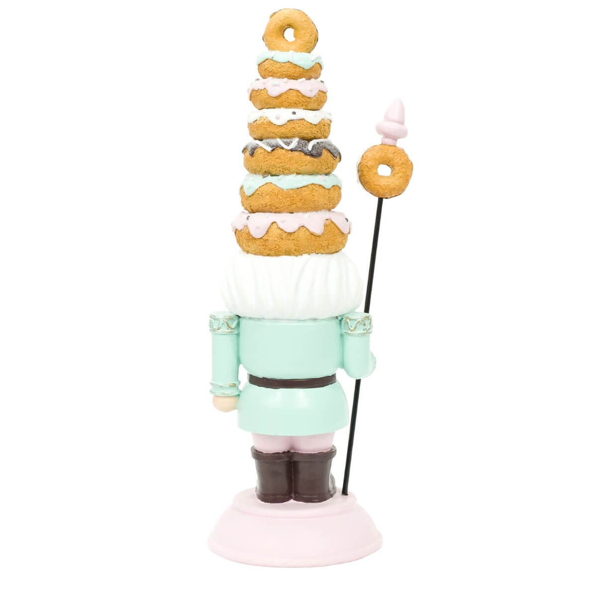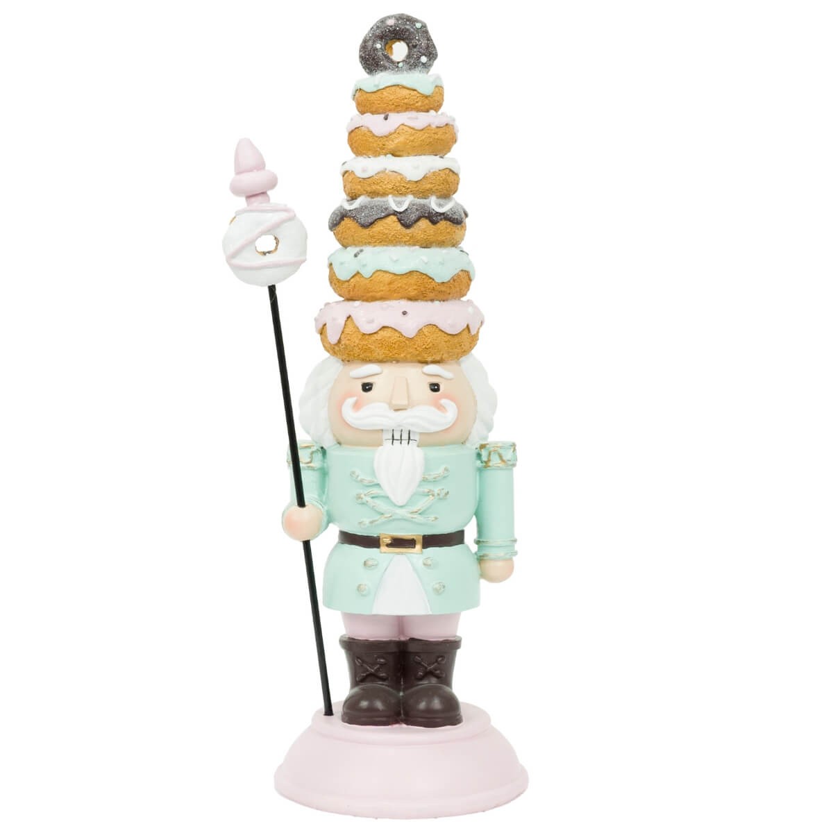 Schiaccianoci Natalizio in Resina con Cappello di Ciambelle – Verde Chiaro e Rosa, H.29,5 cm