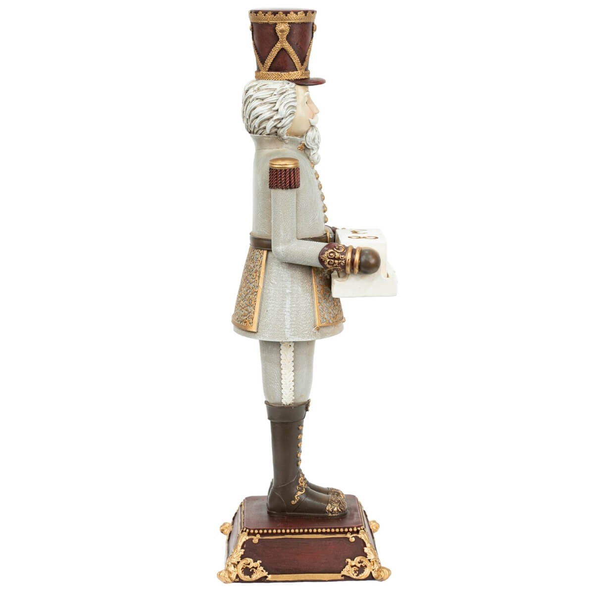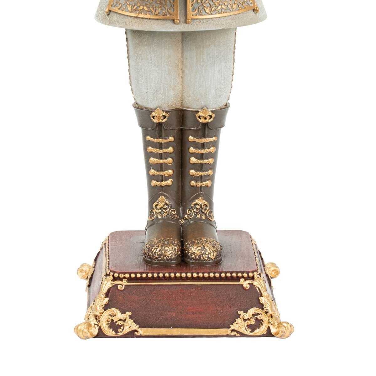 Porta la magia del Natale nella tua casa con questo elegante schiaccianoci natalizio con calendario dell'avvento, perfetto per decorare mensole, caminetti o vetrine. Realizzato in resistente poliresina, questo raffinato personaggio è rifinito nei toni del grigio e bordeaux, con dettagli dorati che donano un tocco regale.