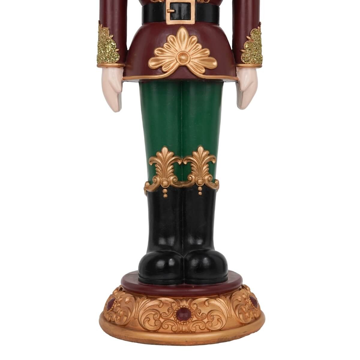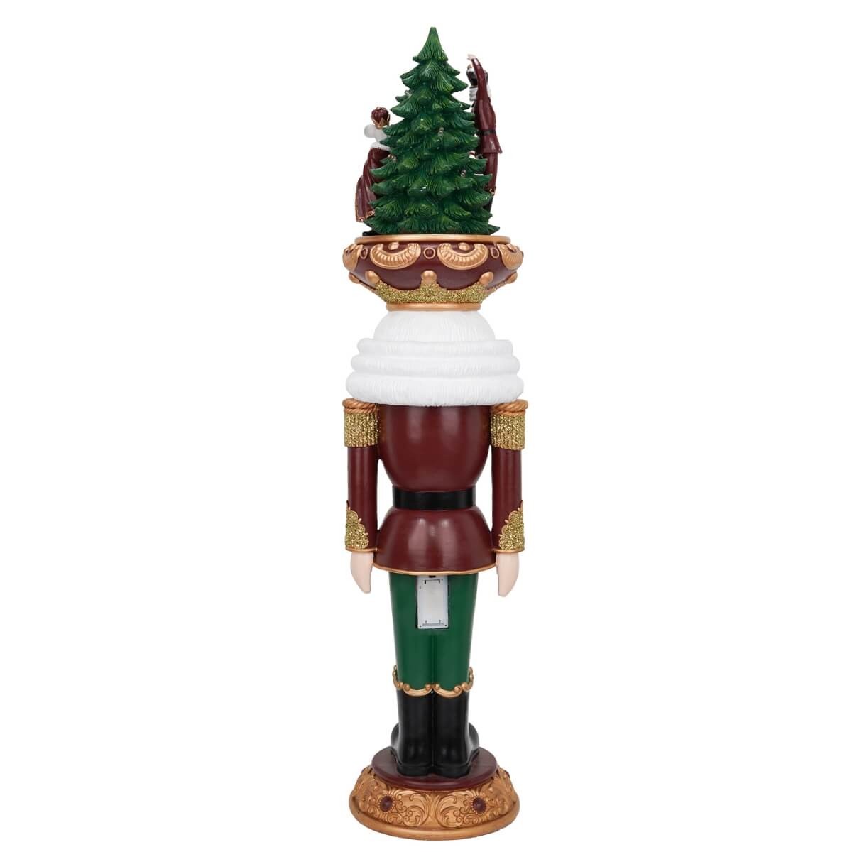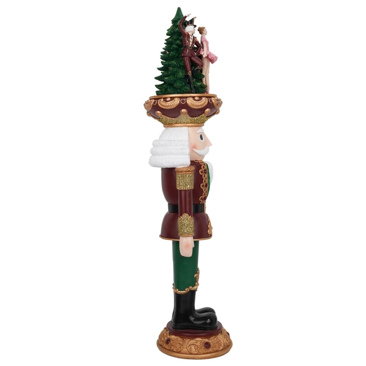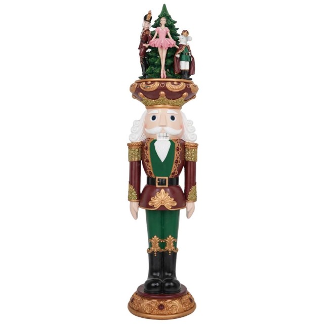 Schiaccianoci Natalizio in Resina con LED H.95 cm – Verde, Oro e Bordeaux con Scena Fiabesca in Cima