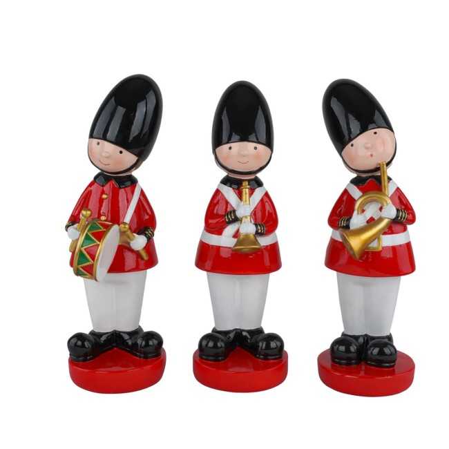 Aggiungi un tocco di magia al tuo Natale con questi incantevoli soldatini natalizi in resina, perfetti per decorare qualsiasi angolo della casa. Disponibili in tre varianti, ogni soldatino indossa un'uniforme dettagliata nei colori bianco, rosso, nero e oro e porta uno strumento musicale: sassofono, tamburo o tromba. Con un’altezza di 28 cm, sono ideali per arricchire il tuo arredamento festivo, rendendo ogni spazio più allegro e suggestivo.