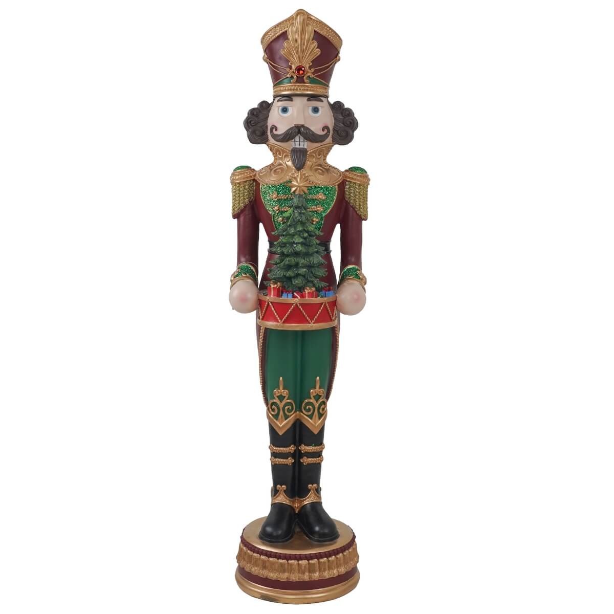 Schiaccianoci Natalizio con Carillon e Luci LED – H. 122,5 cm in Resina | Decorazione Musicale Luminosa per le Feste