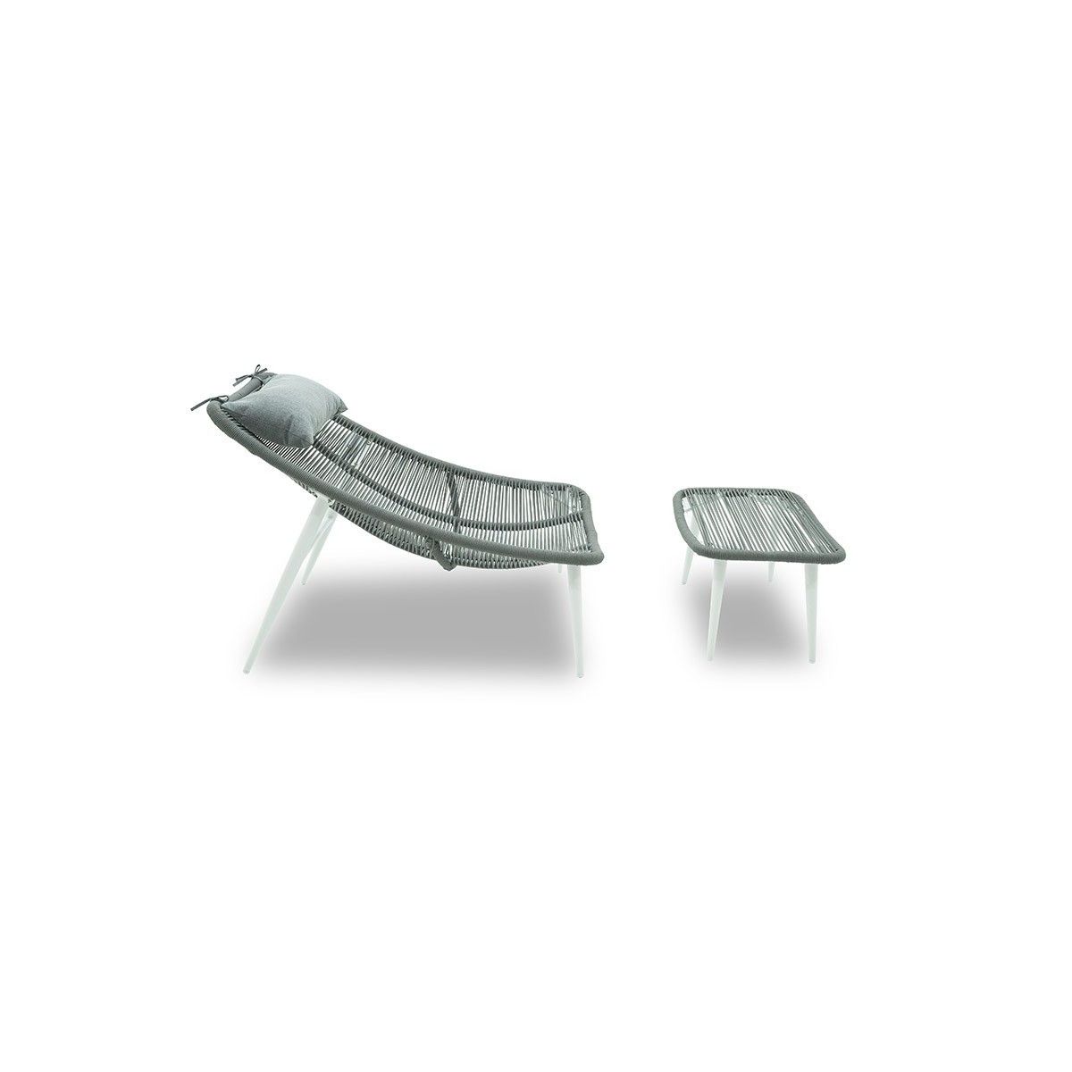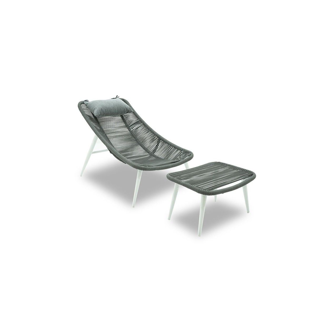 Che sia in casa, in giardino o sul terrazzo non importa... con la poltrona Licis potrete godervi un può di relax in qualsiasi momento. Realizzata con una solida struttura in alluminio bianco rivestita con corde grigie. Fornita di un comodo cuscino poggiatesta e di un poggiapiedi per un confort maggiore; leggera e quindi facile da posizionare o spostare.