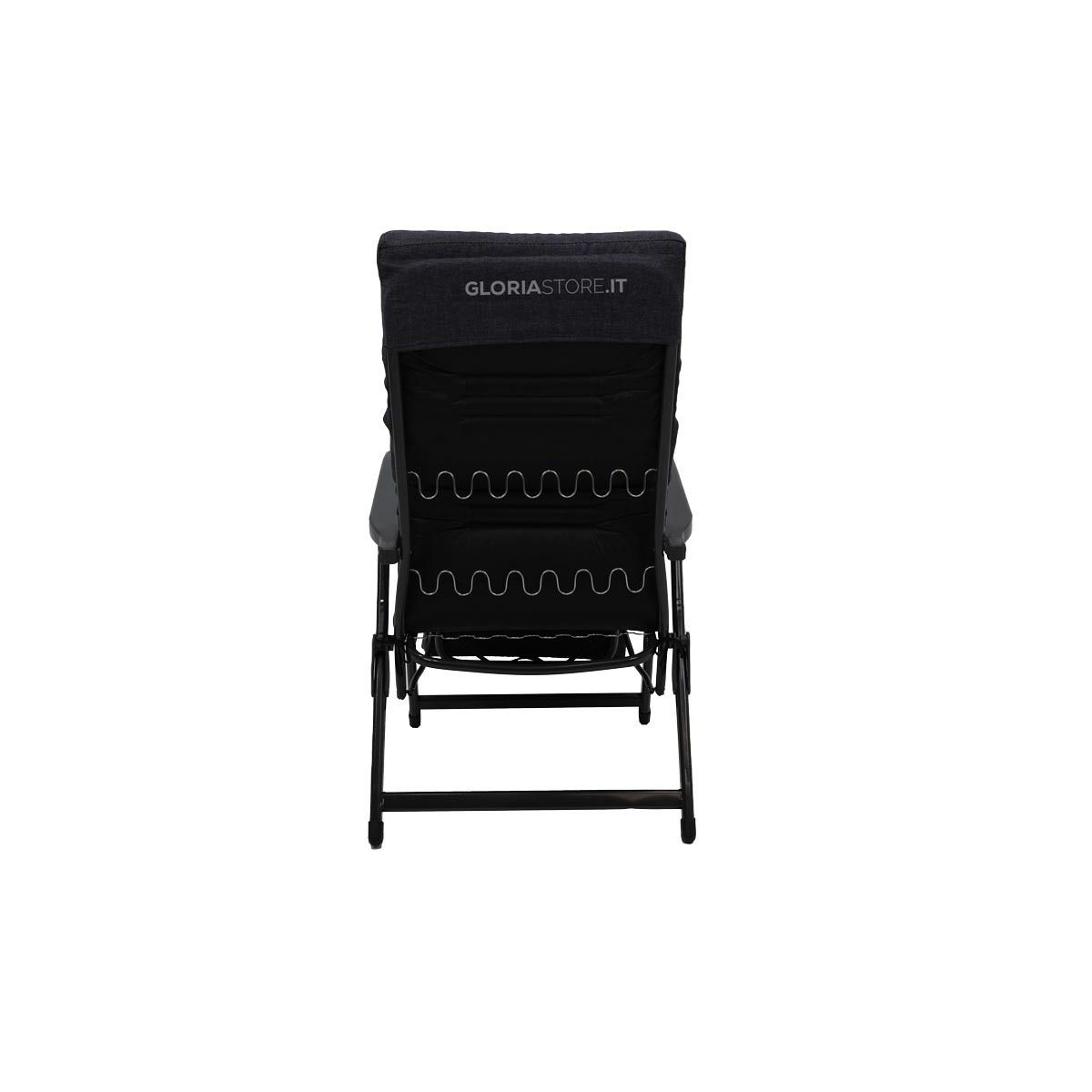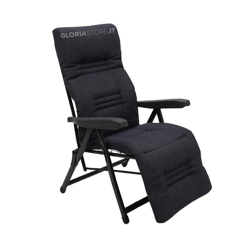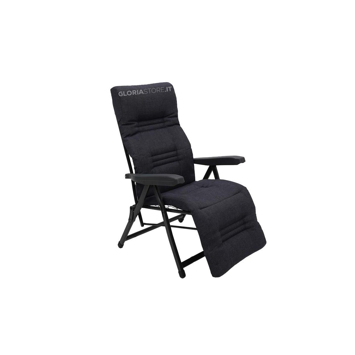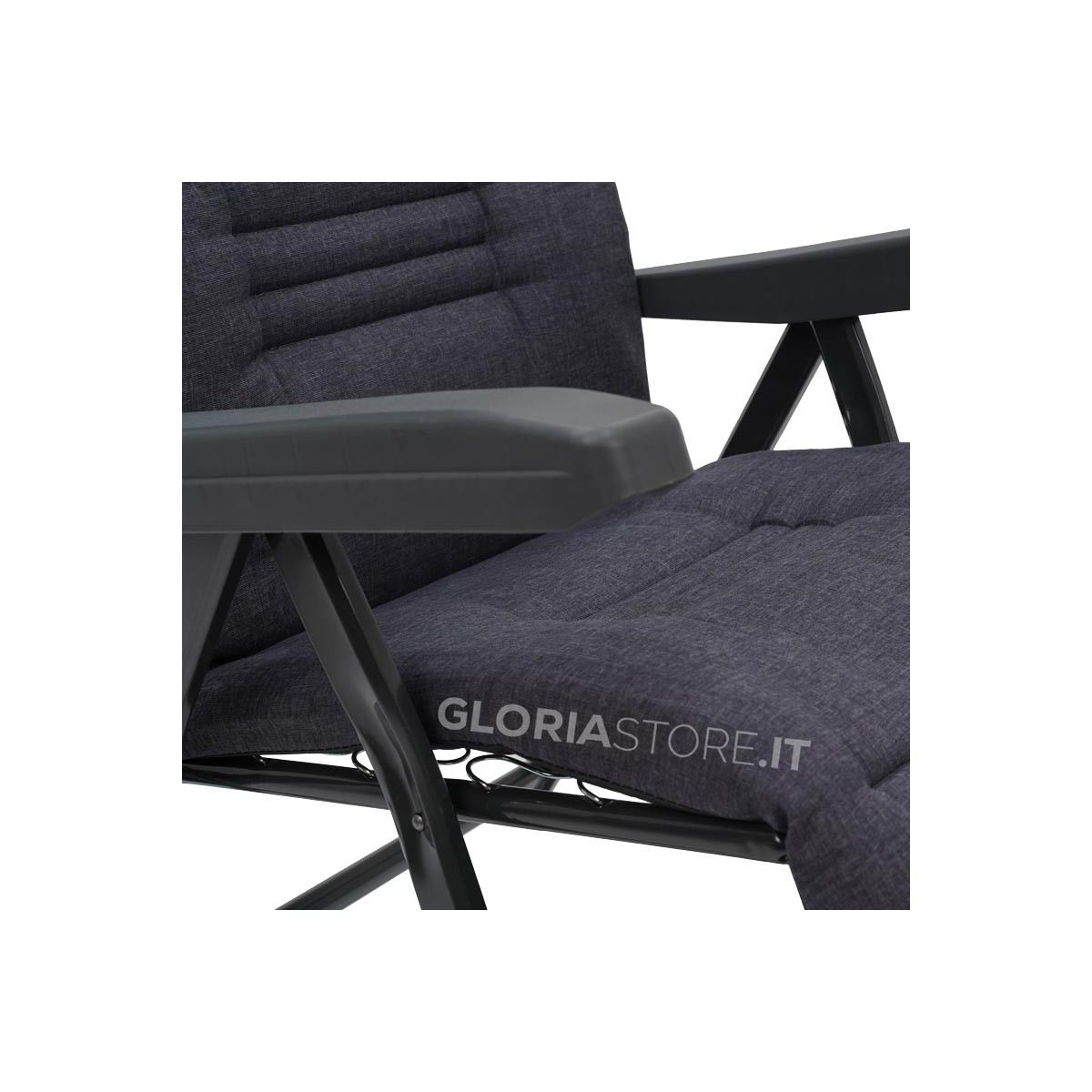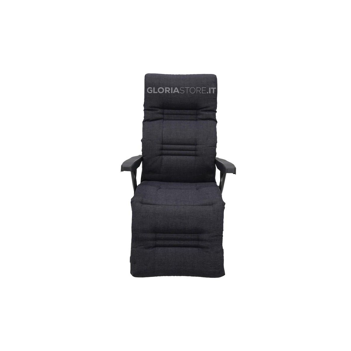 Per un'esperienza di relax ancora più piacevole, abbiamo incluso cuscini imbottiti di alta qualità: il cuscino della seduta ha uno spessore di 7 cm, mentre il cuscino del poggiatesta è di 12 cm, per un supporto ottimale della testa e del collo. Il tessuto loneta 160 gr conferisce alla poltrona un tocco di morbidezza e comfort.