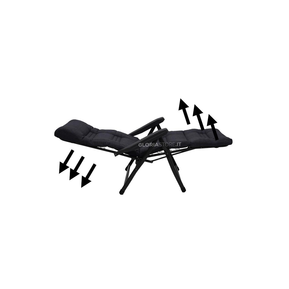Quando non in uso, la poltrona sdraio può essere facilmente riposta grazie alle sue dimensioni compatte quando chiusa (100x60x18 cm) e al suo peso ridotto di soli 6,5 kg.