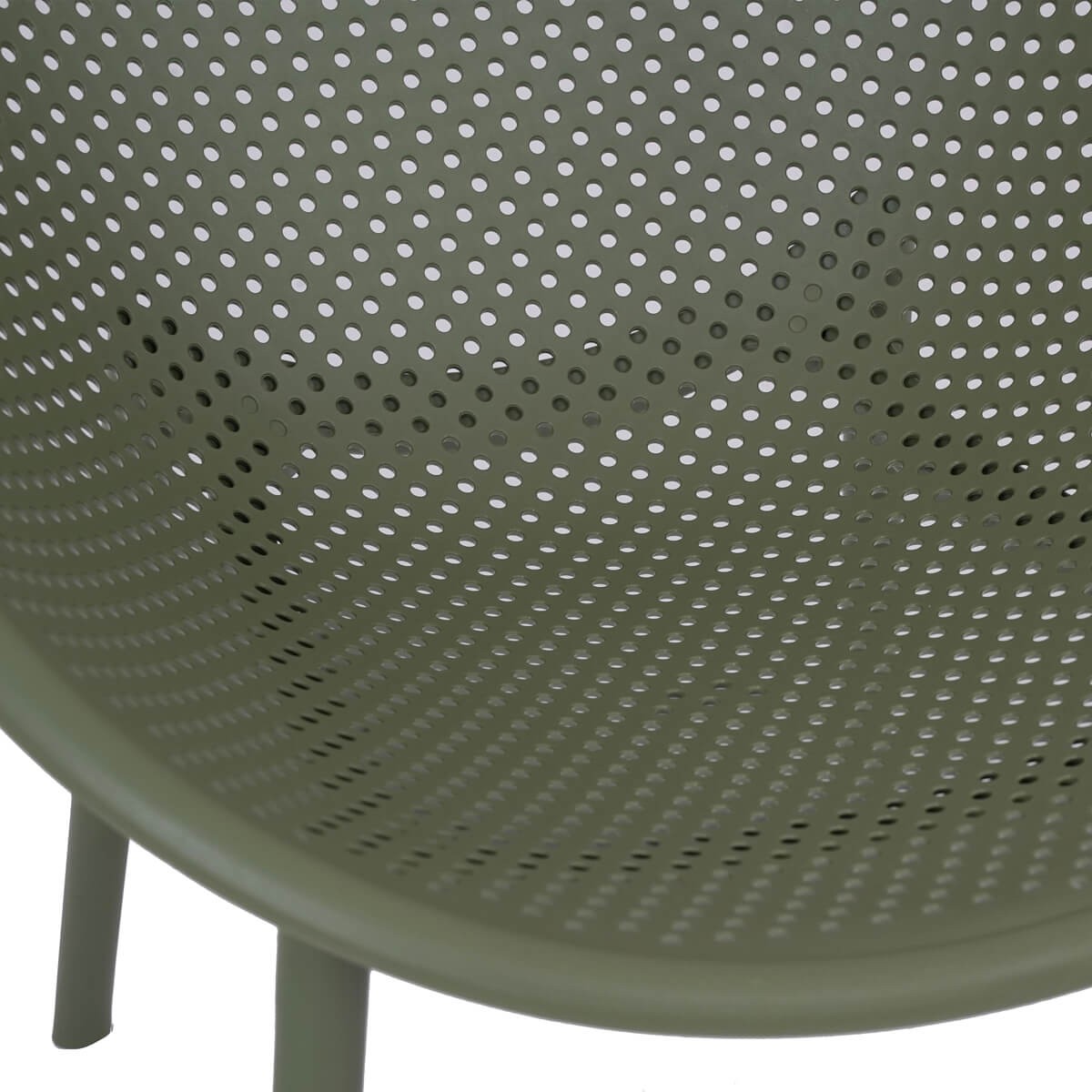 Le dimensioni di 66x76xH.82 cm e l’altezza della seduta di 39 cm garantiscono un comfort ottimale per momenti di relax all’aperto. Il design ergonomico e traforato favorisce una seduta traspirante, ideale per le giornate più calde. La struttura è progettata per resistere alle intemperie e per mantenere la sua estetica nel tempo, senza necessità di manutenzione particolare.