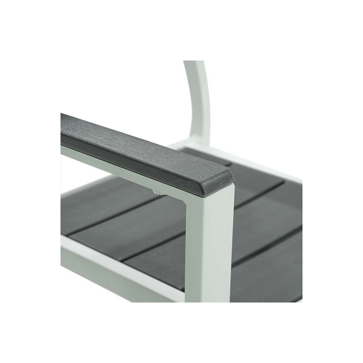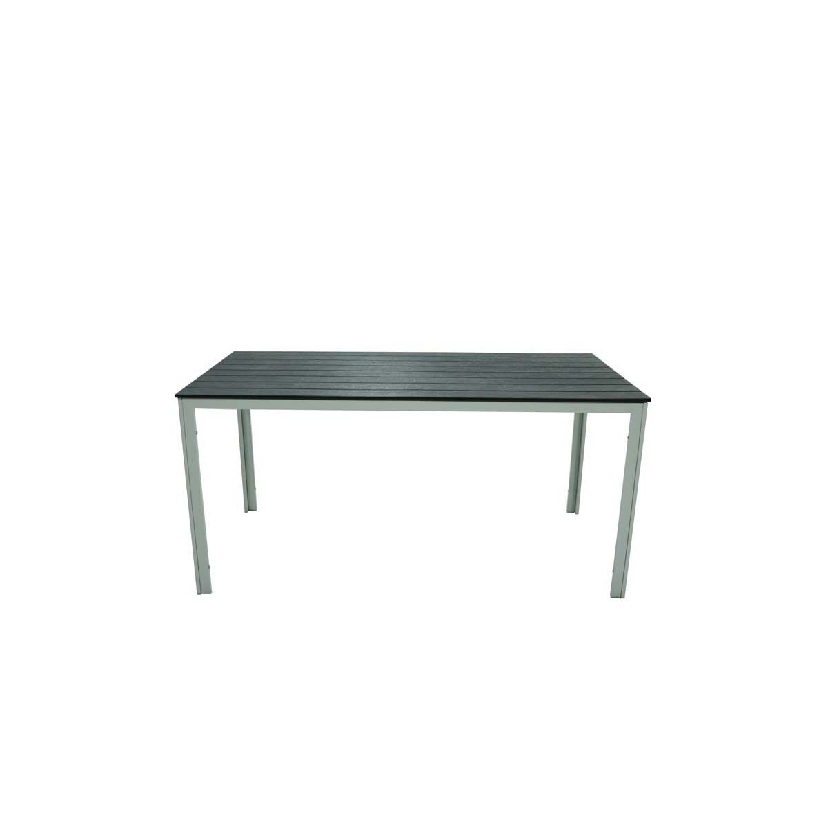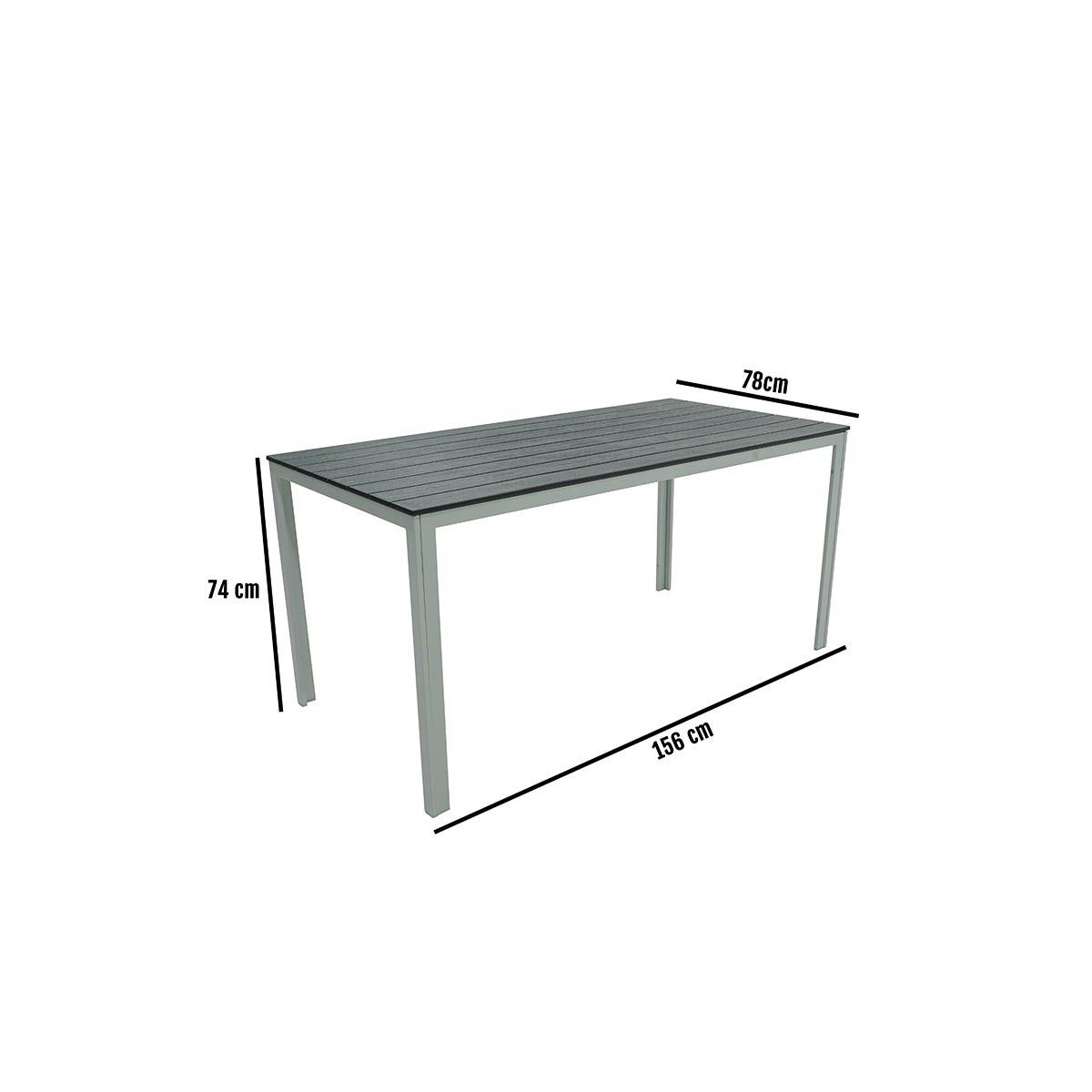 Il tavolo presenta un piano realizzato in doghe da 13 mm in HDPE, che offre un'affascinante finitura effetto teak, combinando estetica e durabilità. La struttura è costruita in ferro, assicurando stabilità e resistenza nel tempo.