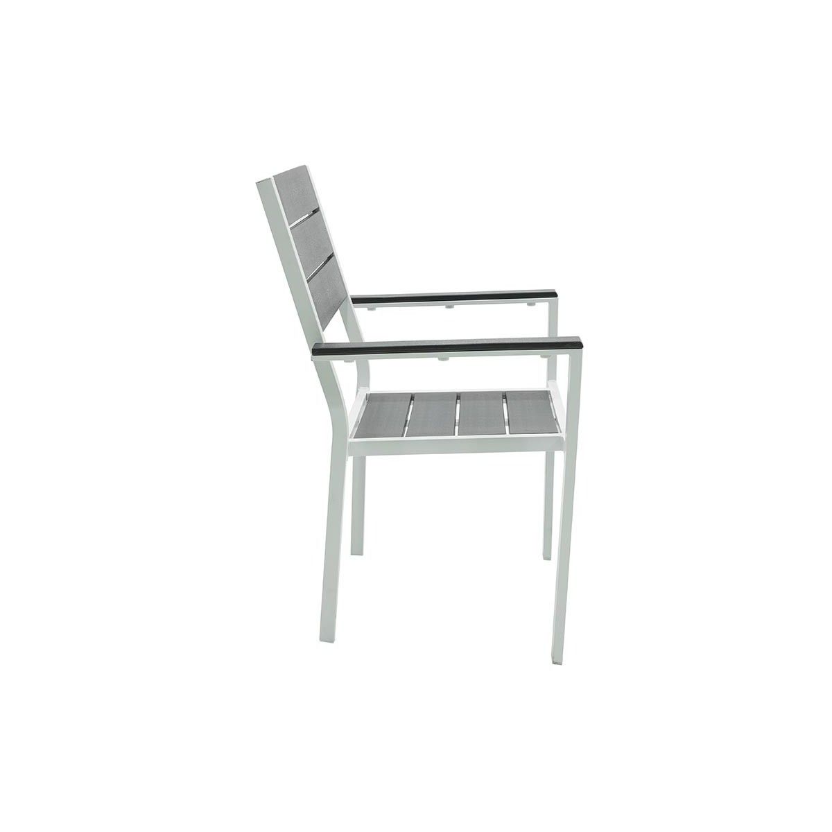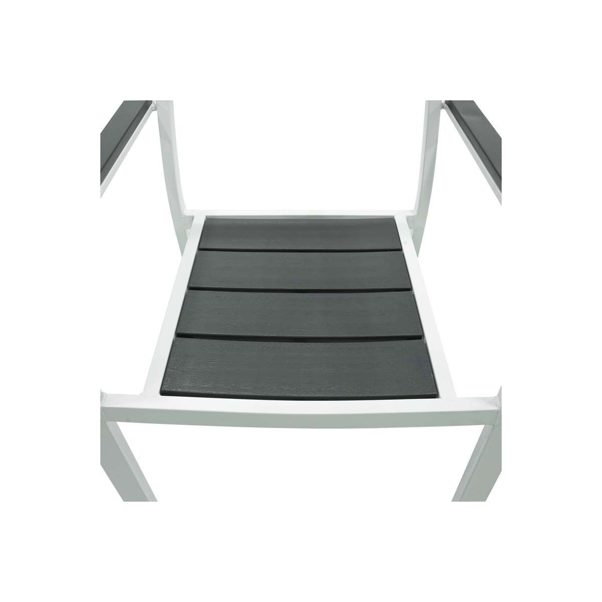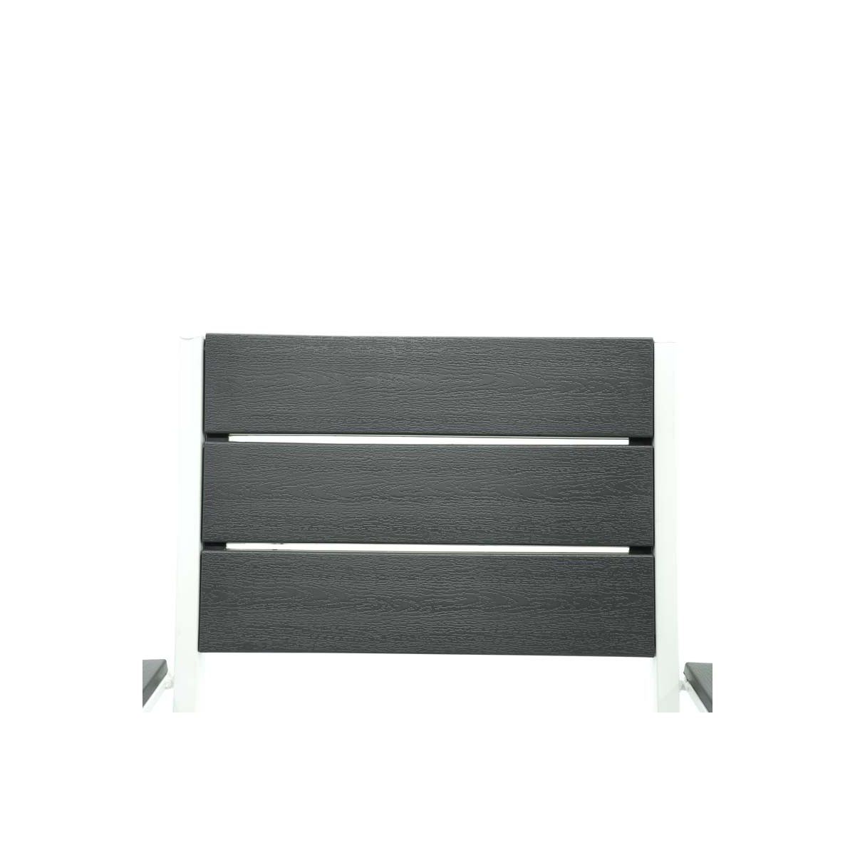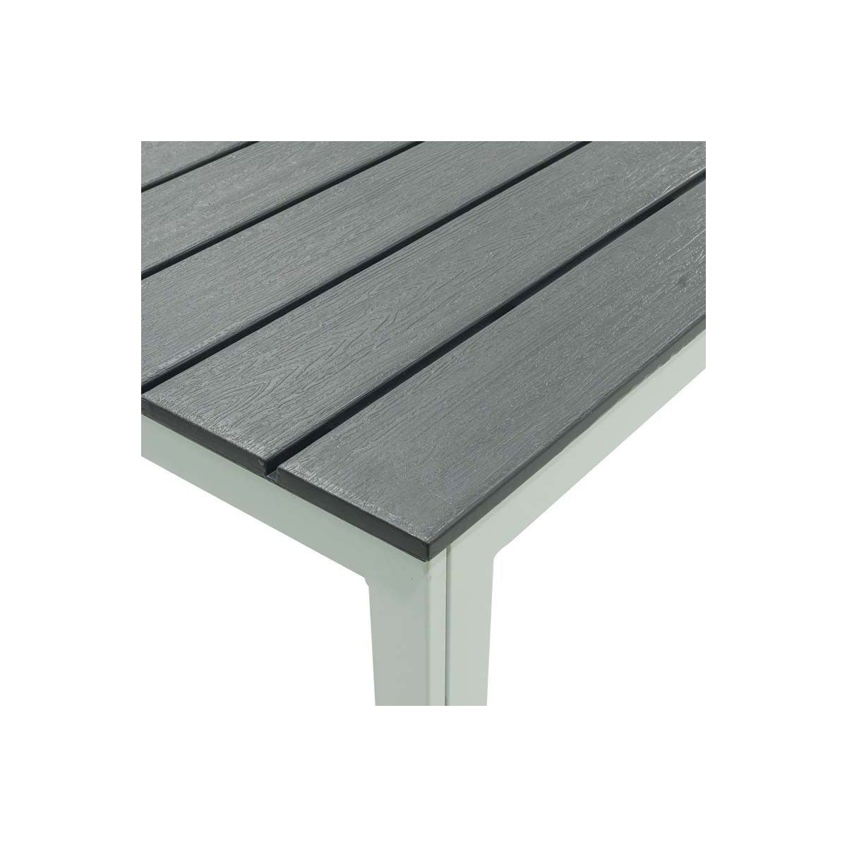 Il tavolo presenta un piano realizzato in doghe da 13 mm in HDPE, che offre un'affascinante finitura effetto teak, combinando estetica e durabilità. La struttura è costruita in ferro, assicurando stabilità e resistenza nel tempo.