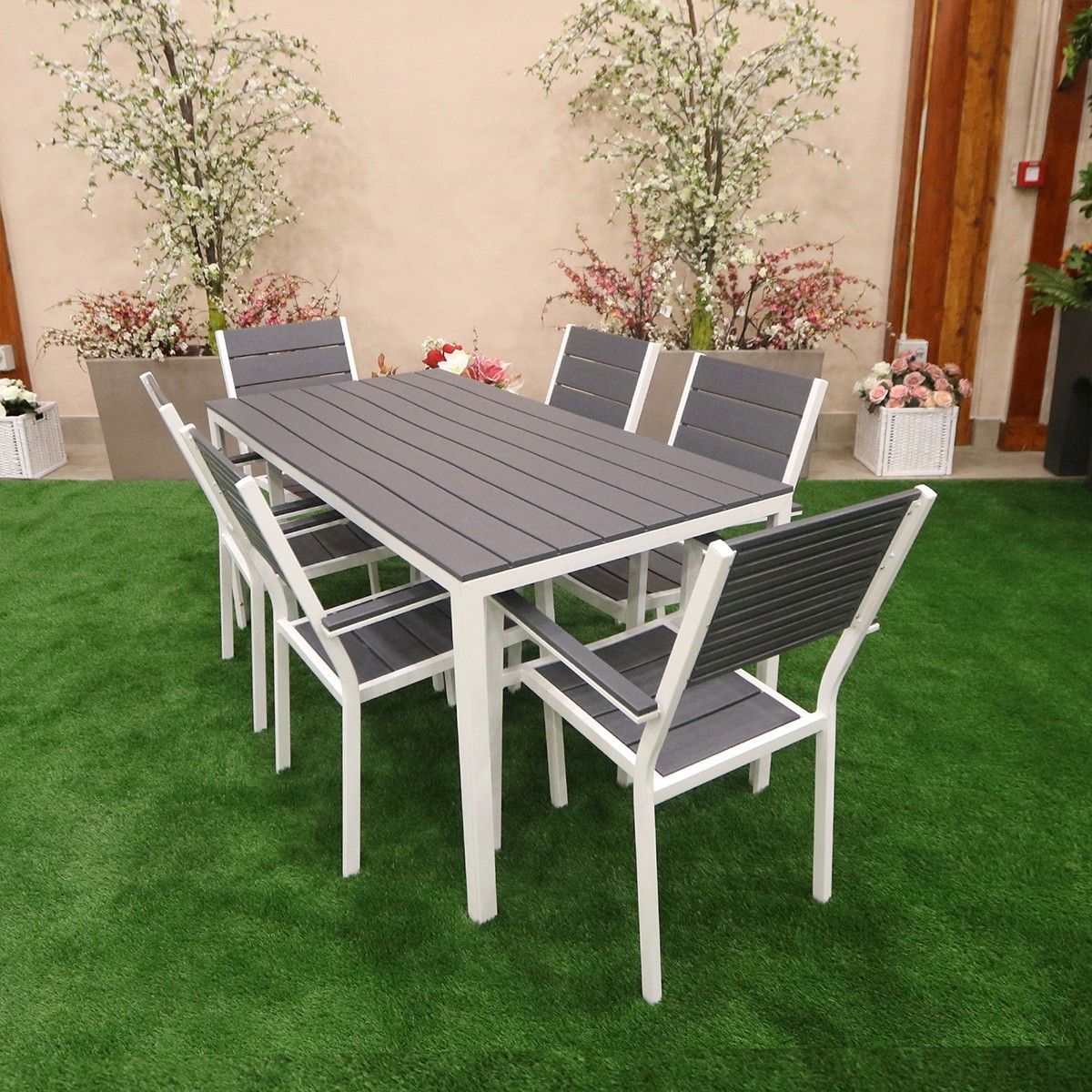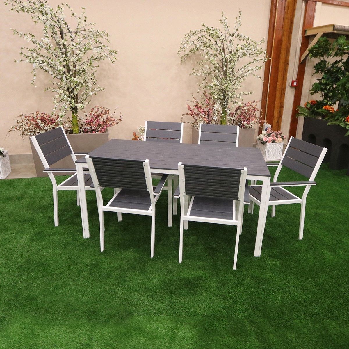 Rinnova il tuo spazio esterno con il set tavolo da giardino Altair, un'opzione elegante e funzionale per accogliere famiglia e amici all'aperto. Questo set completo include un tavolo rettangolare dal design contemporaneo, accompagnato da sei sedie per garantire comfort e praticità durante i momenti conviviali.