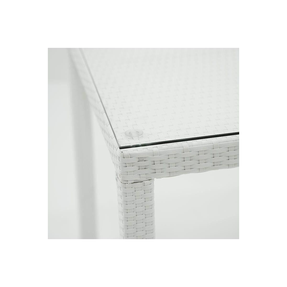 Questo tavolo da giardino dal design semplice ed elegante si adatta ad ogni tipo di stile; perfetto per ospitare i tuoi cari nel tuo giardino o in terrazza. Il set comprende: un tavolo e 4 sedie. Il tavolo è realizzato in hularo bianco con il piano in vetro temperato, le sedie sono realizzate con una solida struttura in alluminio rivestite in hularo bianco. Grazie all'alta qualità dei materiali resiste agli agenti atmosferici; leggero e pratico è facile da posizionare o spostare.