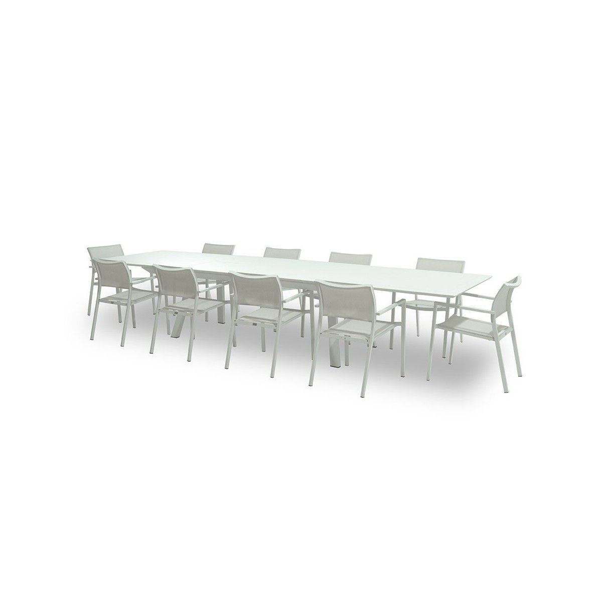 Dal design semplice ed elegante, il set completo Didone White si adatta ad ogni tipo di stile. Inoltre potrete ospitare tutti i vostri amici, con il tavolo Didone non avrete più problemi di spazio. Il set comprende: un tavolo allungabile fino a 4 metri e potrete scegliere se acquistare 8,10 o 12 poltrone. Il set ha una solida struttura in alluminio verniciato a polvere. Grazie all'alta qualità dei materiali resiste agli agenti atmosferici e alle intemperie.