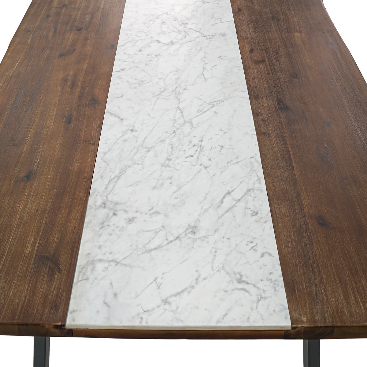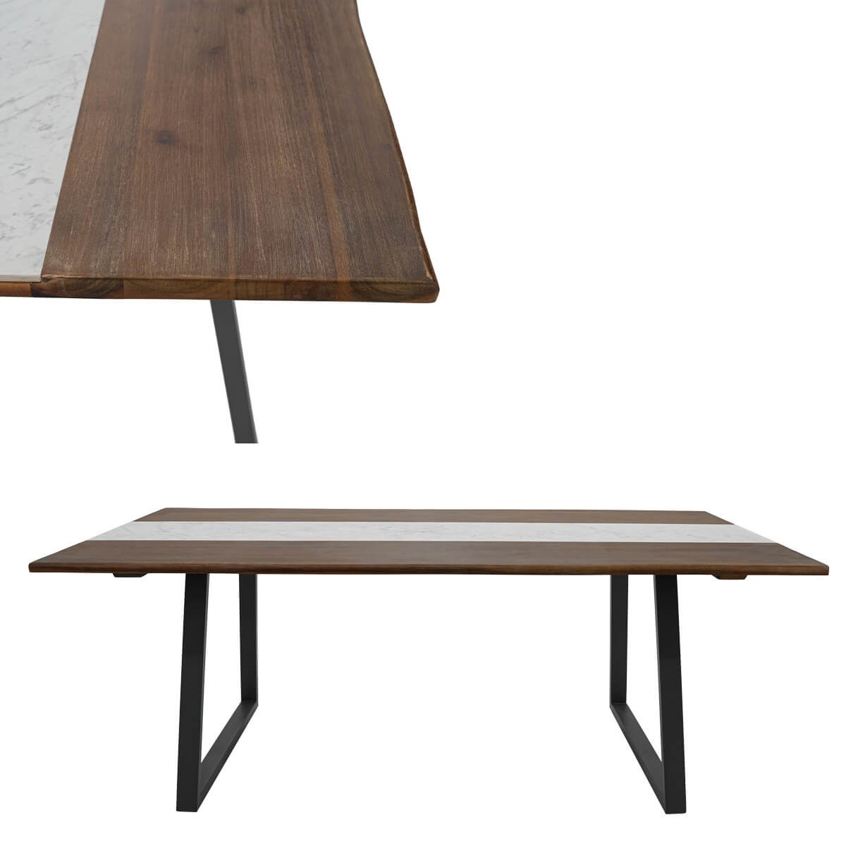 Il tavolo presenta un design raffinato grazie alla combinazione di legno di Acacia e gres porcellanato, che garantiscono resistenza e durabilità nel tempo. La struttura in ferro verniciato a polvere di colore antracite offre stabilità e robustezza, mentre il piano di gres porcellanato e legno di acacia assicurano una superficie durevole e facile da pulire.