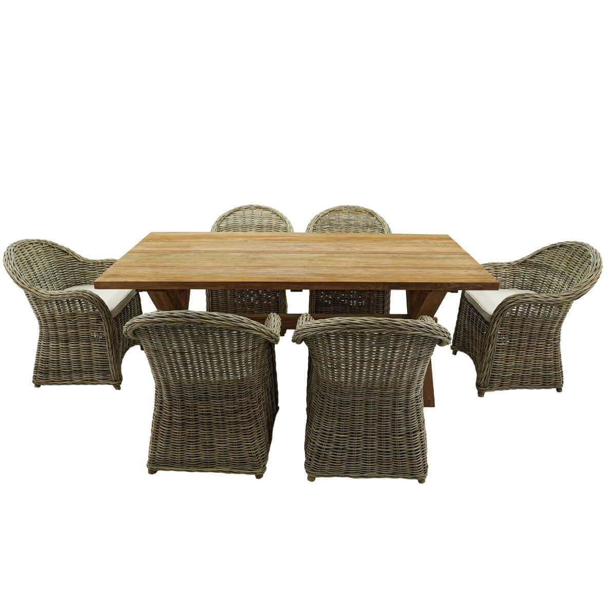 Set Tavolo e Sedie da Esterno in Teak e Rattan, 6 Persone - Leicester