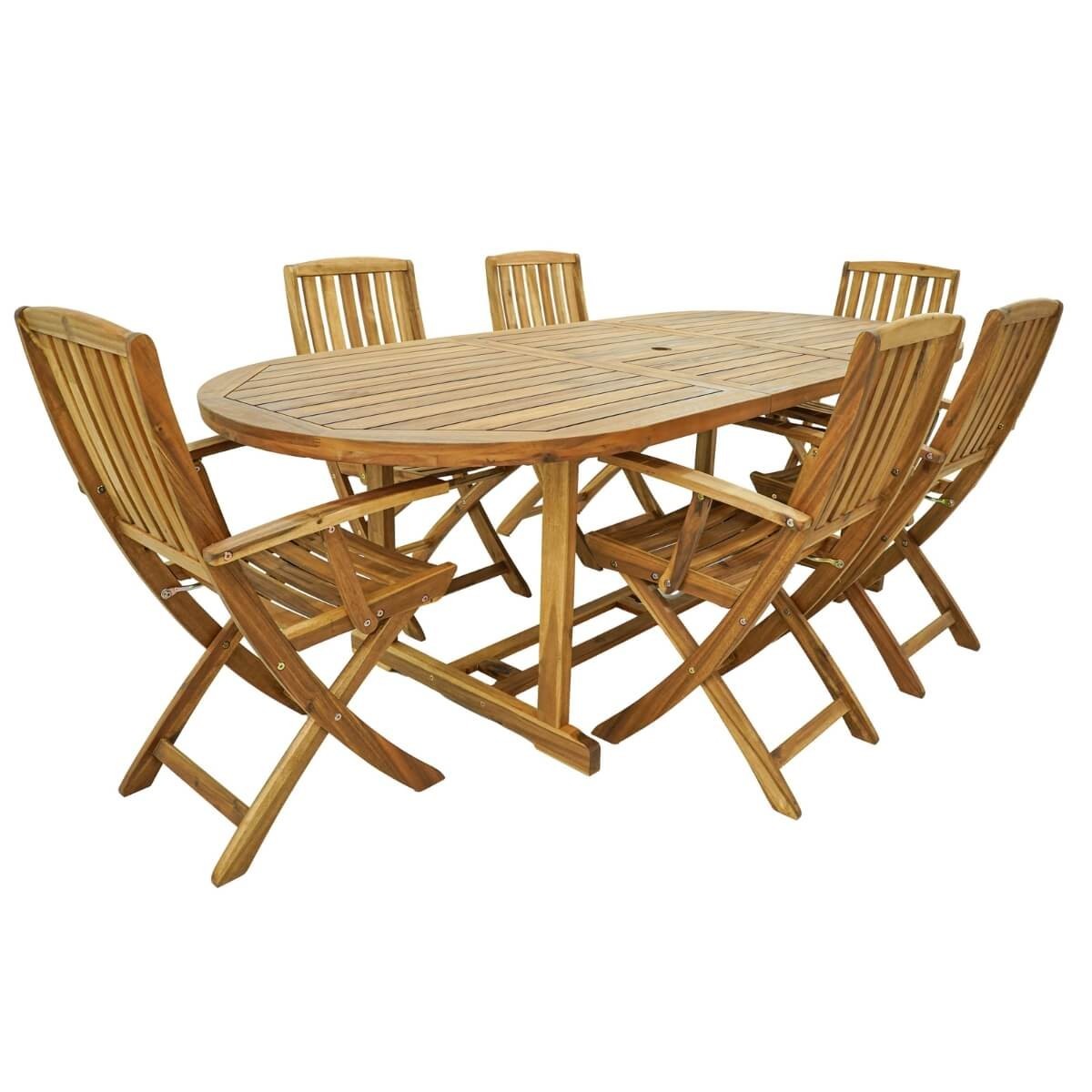 Set Tavolo Allungabile e Sedie Pieghevoli in Legno di Acacia, 6 Persone - Greenwich