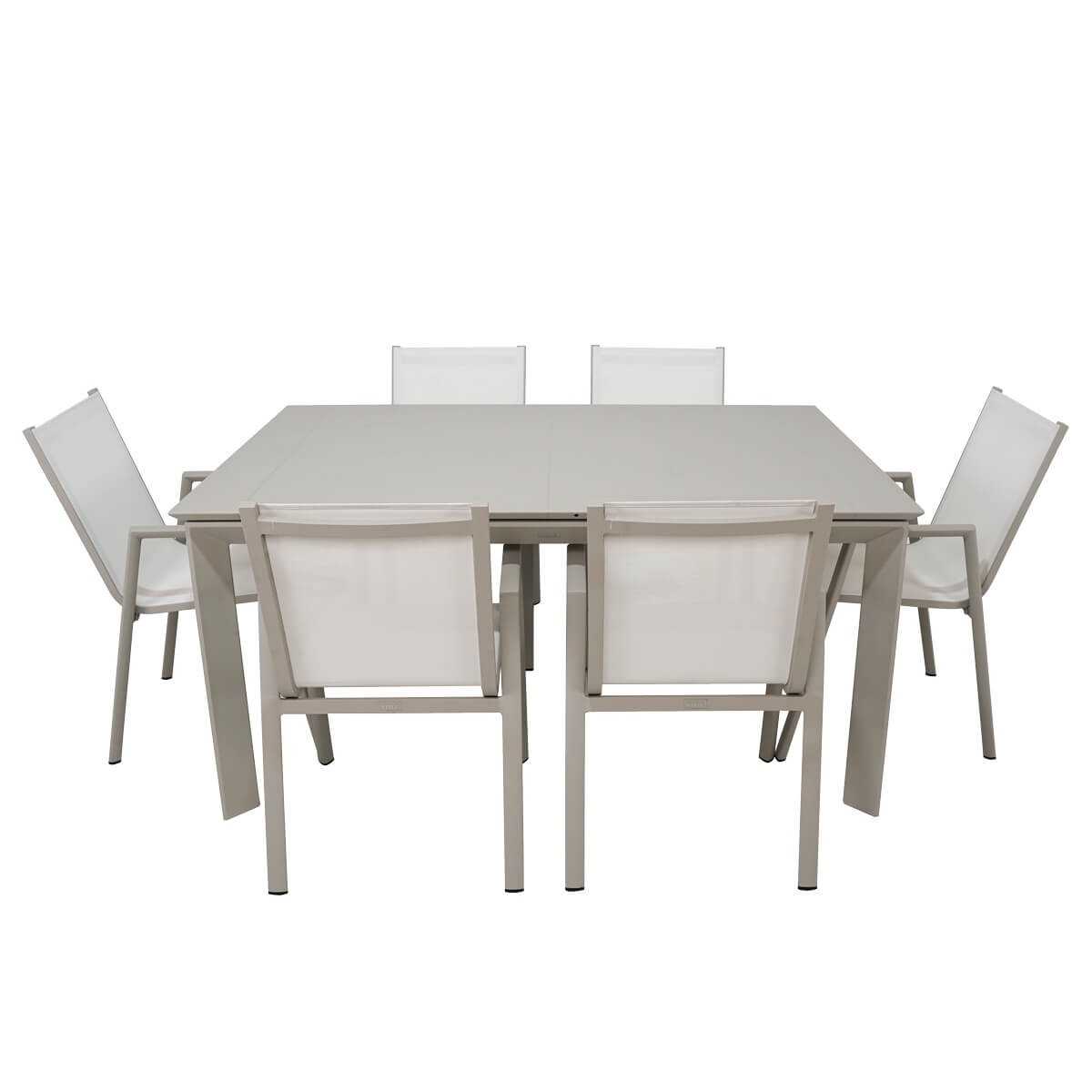 Scopri il perfetto equilibrio tra eleganza e funzionalità con il Set Tavolo Allungabile da Giardino Stirling per 6/8 Persone, firmato Stilè. Questo elegante set, caratterizzato dai colori beige e bianco, è la scelta perfetta per cene all'aperto e momenti di relax con amici e familiari. Il tavolo, versatile e funzionale, misura 110x160x76 cm da chiuso e 160x160x76 cm da aperto, offrendo ampio spazio per ogni occasione. Le sedie abbinate, realizzate anch'esse in alluminio verniciato a polvere, presentano uno schienale e una seduta in textilene, materiale noto per la sua resistenza e comfort. Ogni sedia misura 54x65.5x89 cm, garantendo un'esperienza di seduta confortevole e rilassante.