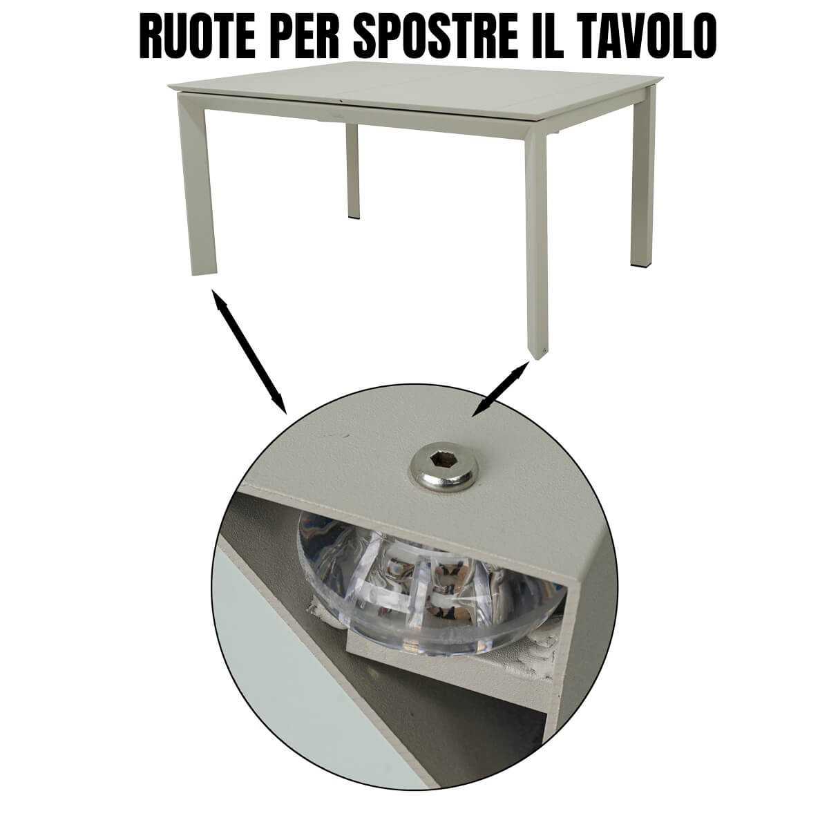 - Materiale tavolo: alluminio verniciato a polvere