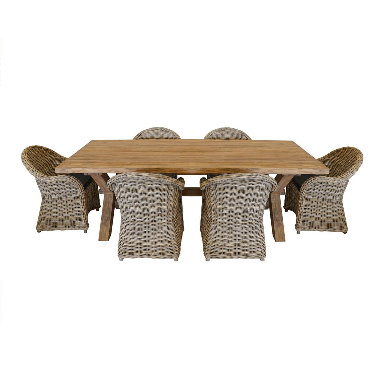 Set Tavolo da Giardino in Teak con 6 Sedie in Rattan - Boston