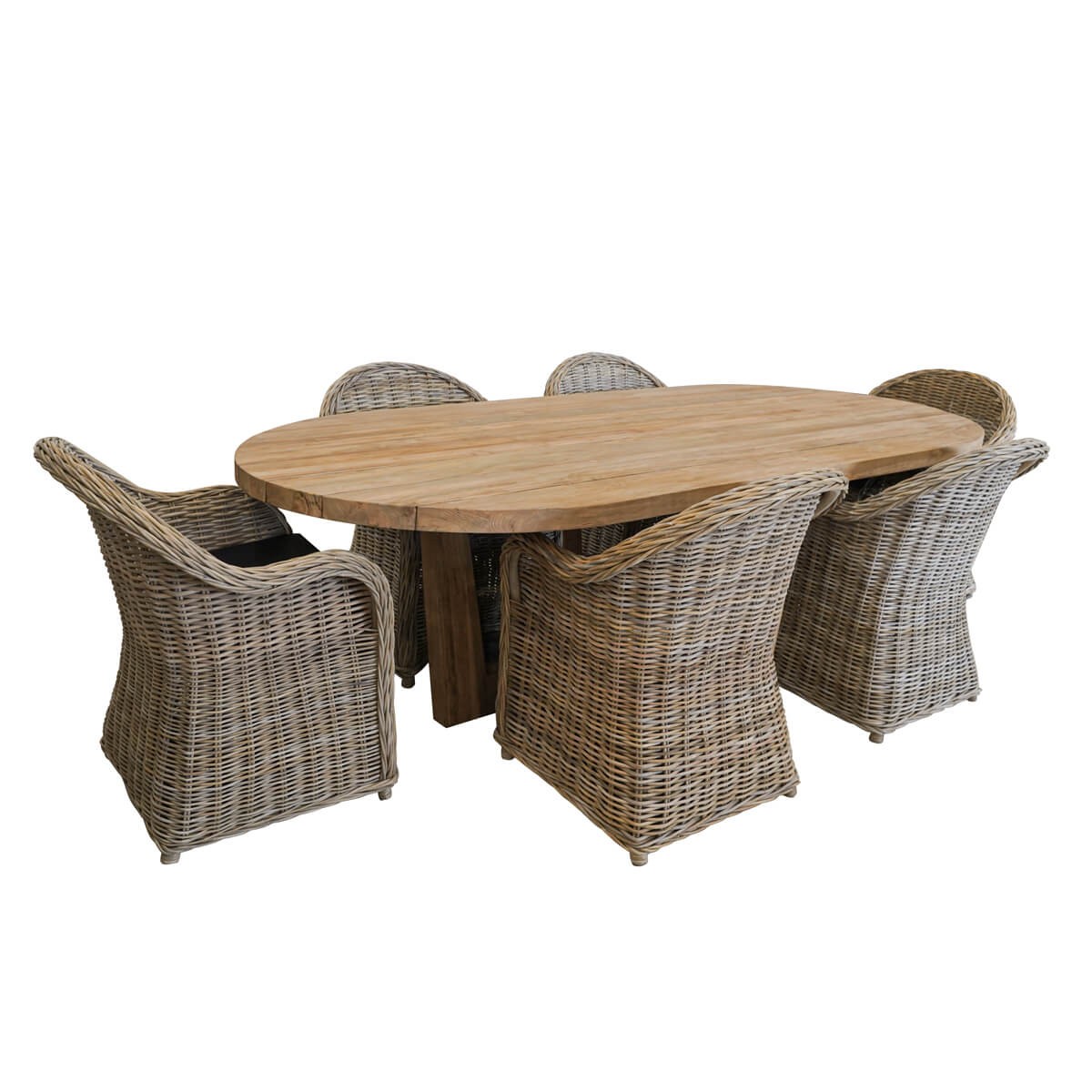 Set Tavolo Ovale in Teak con 6 Sedie in Rattan - Luton