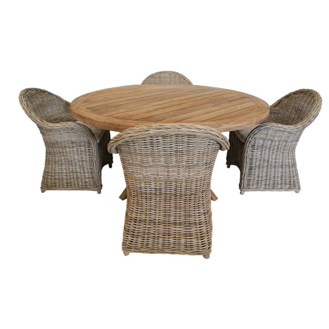 Set Tavolo Rotondo in Teak con 4 Sedie in Rattan - Oxford