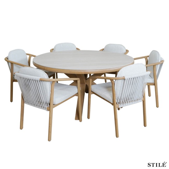 Le sedie, dotate di braccioli e schienali in corda Olifen da 15 mm, combinano comfort ed eleganza, offrendo una seduta ergonomica e resistente. I cuscini in Olifen sfoderabile assicurano praticità e facilità di manutenzione, rendendo questo set perfetto per l’utilizzo quotidiano all’aperto.