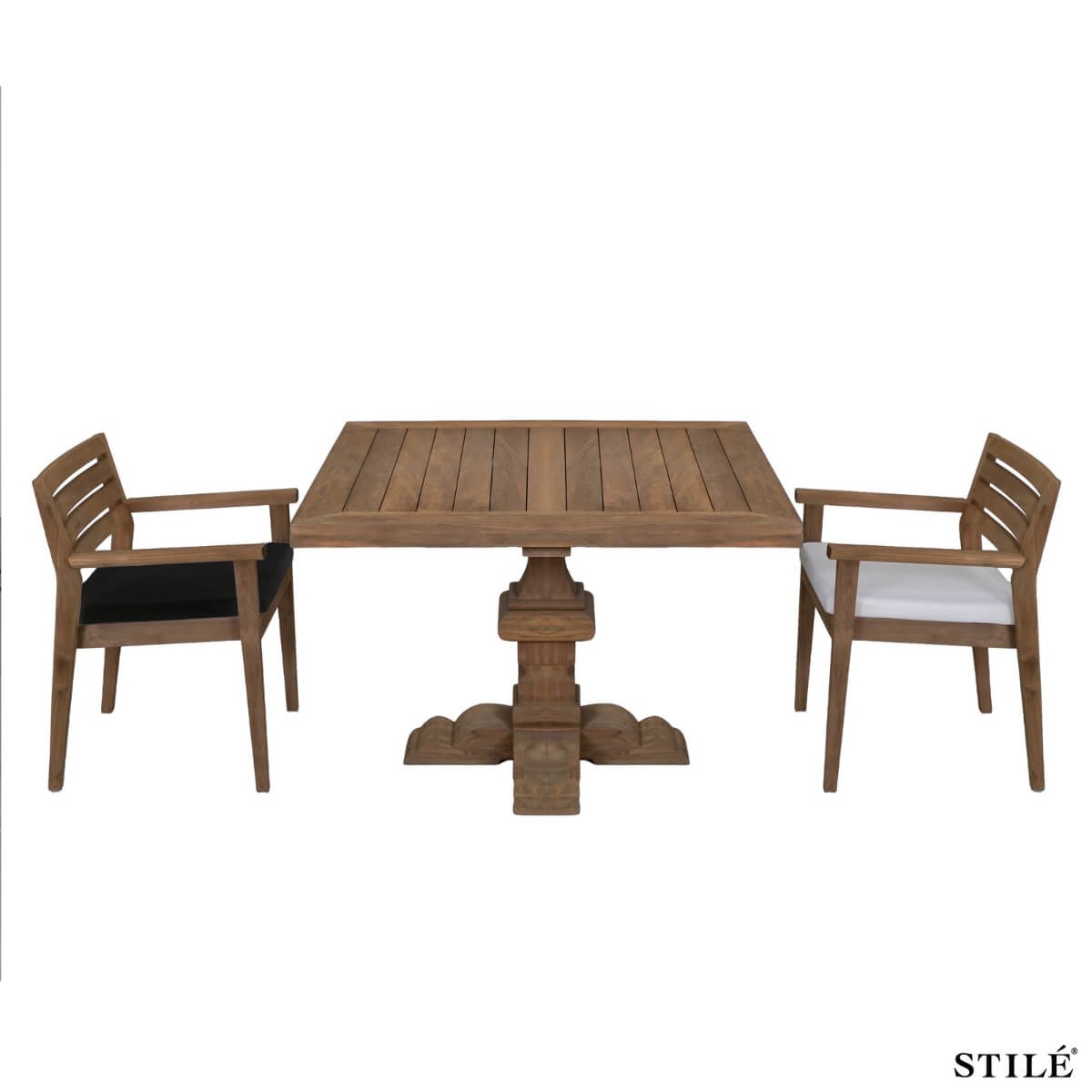 Set Tavolo da Giardino in Teak Riciclato 110x110 cm con 2 Sedie – Arredo Outdoor Naturale ed Elegante
