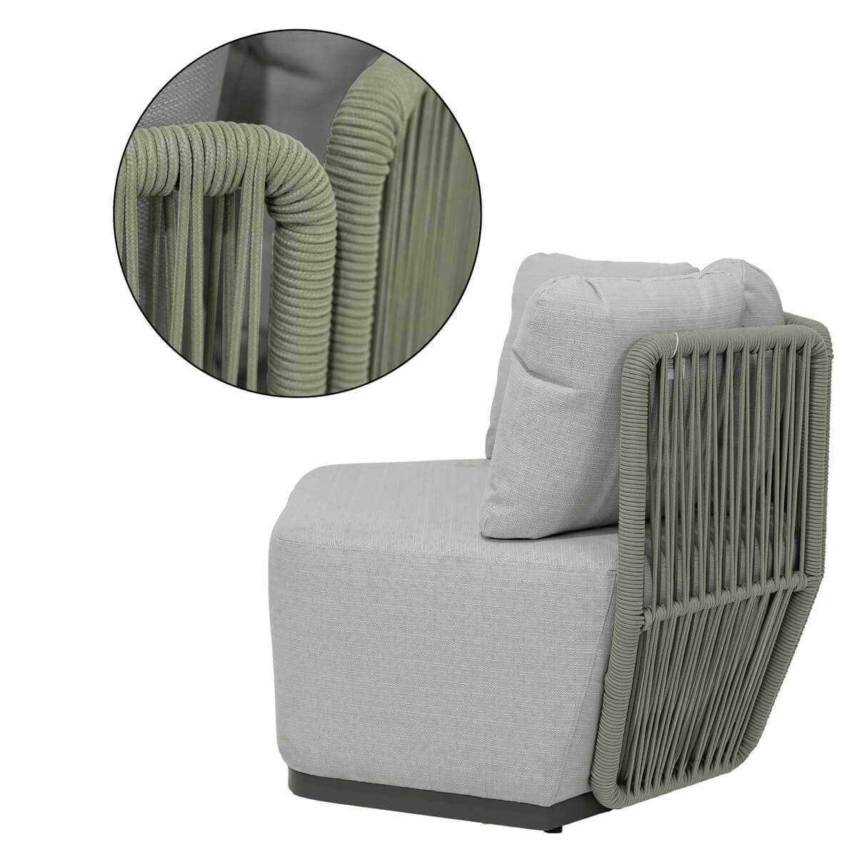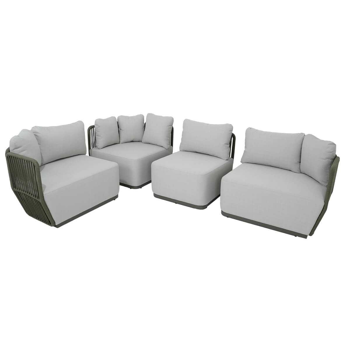 Olifen: tipo di tessuto realizzato in polipropilene, un polimero sintetico. È noto per la sua resistenza all'acqua e alle macchie, rendendolo particolarmente adatto per l'uso esterno. Questo materiale è anche resistente ai raggi UV, il che impedisce che il colore sbiadisca quando esposto alla luce solare diretta. Inoltre, il tessuto Olifen è resistente alla muffa e facile da mantenere, rendendolo ideale per divani da giardino e altri tessuti utilizzati in ambienti esterni.