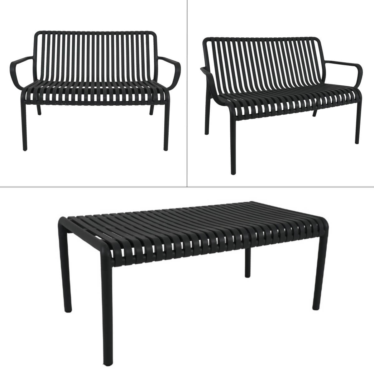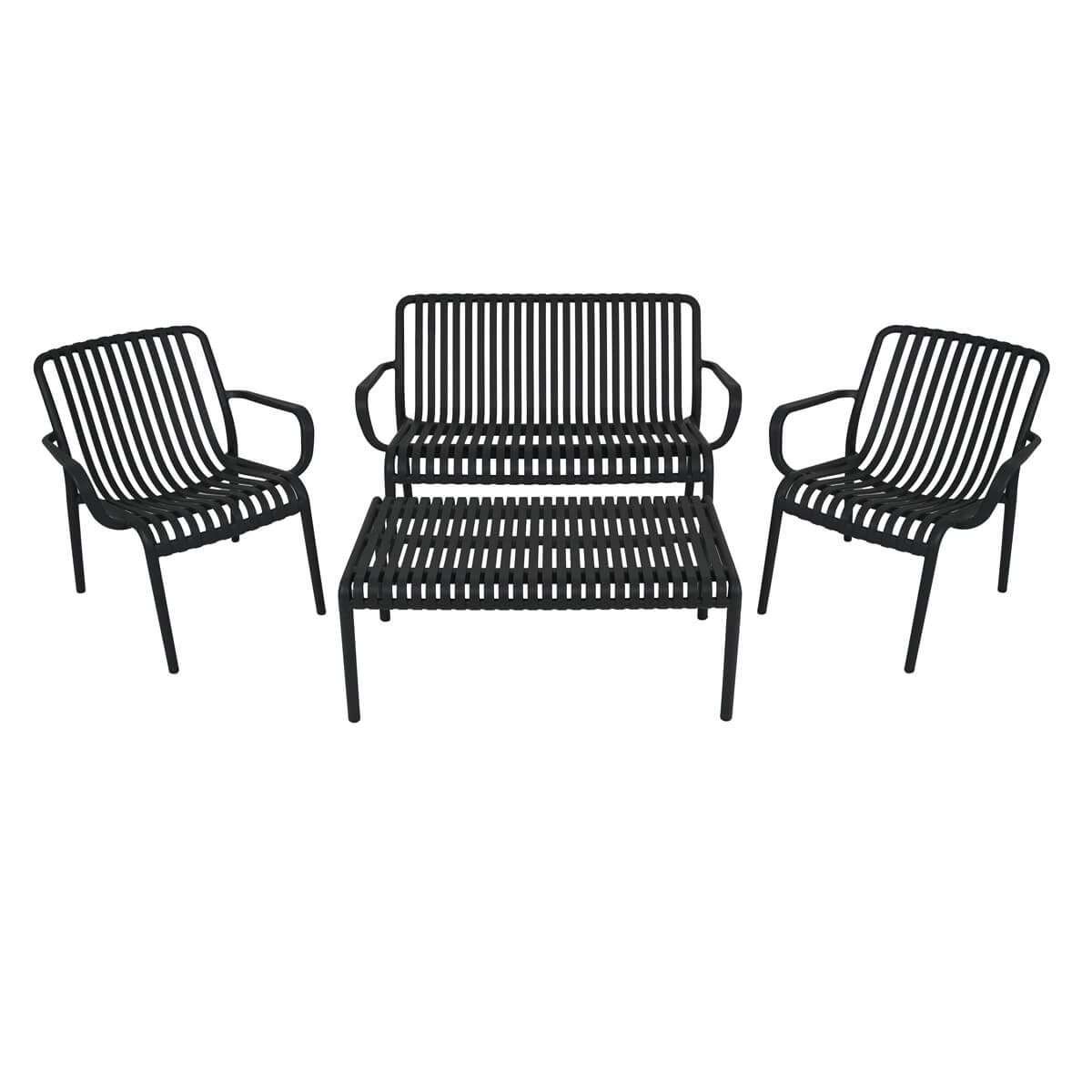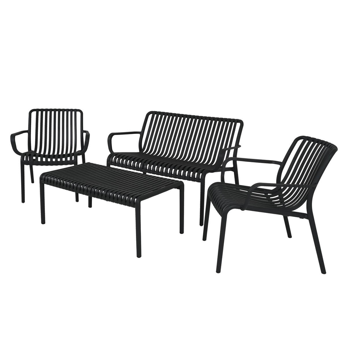 Set Divano da Giardino in Polietilene - Design Moderno a Doghe Aperte, 4 Colori Disponibili
